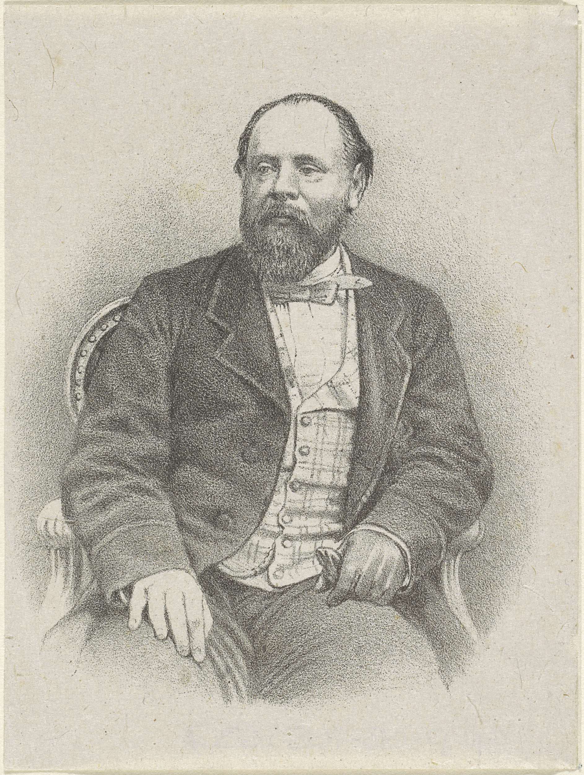Portret van Willem III. Hij zit in een stoel met in zijn linkerhand zijn handschoen.