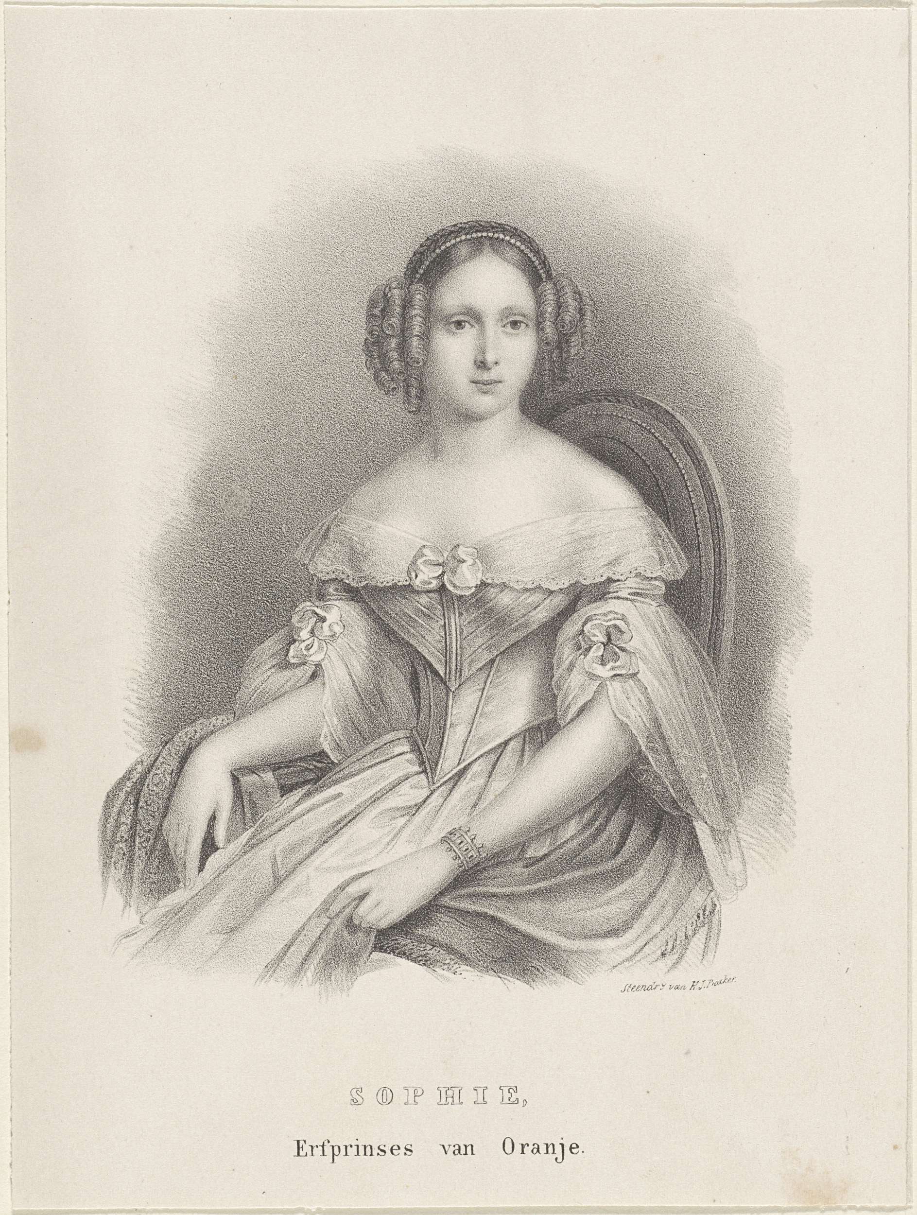 Portret van Sophie. In de ondermarge haar naam en titel.