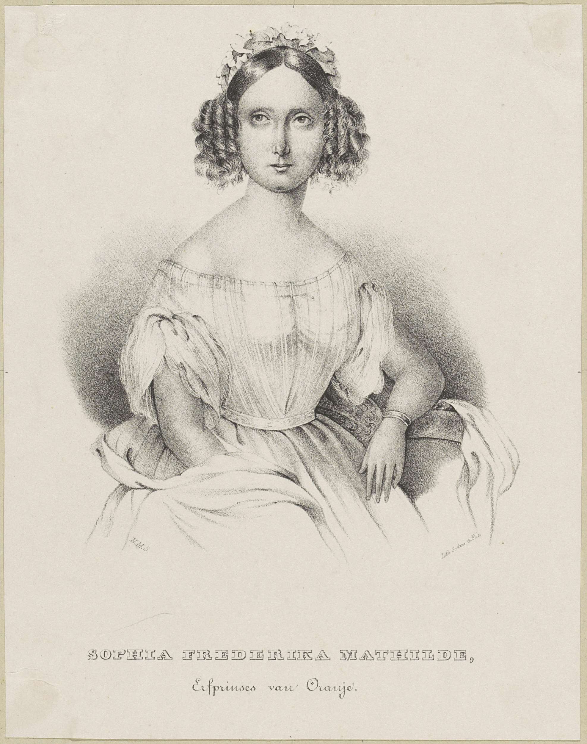 Portret van Sophie. In de ondermarge haar naam en titel.