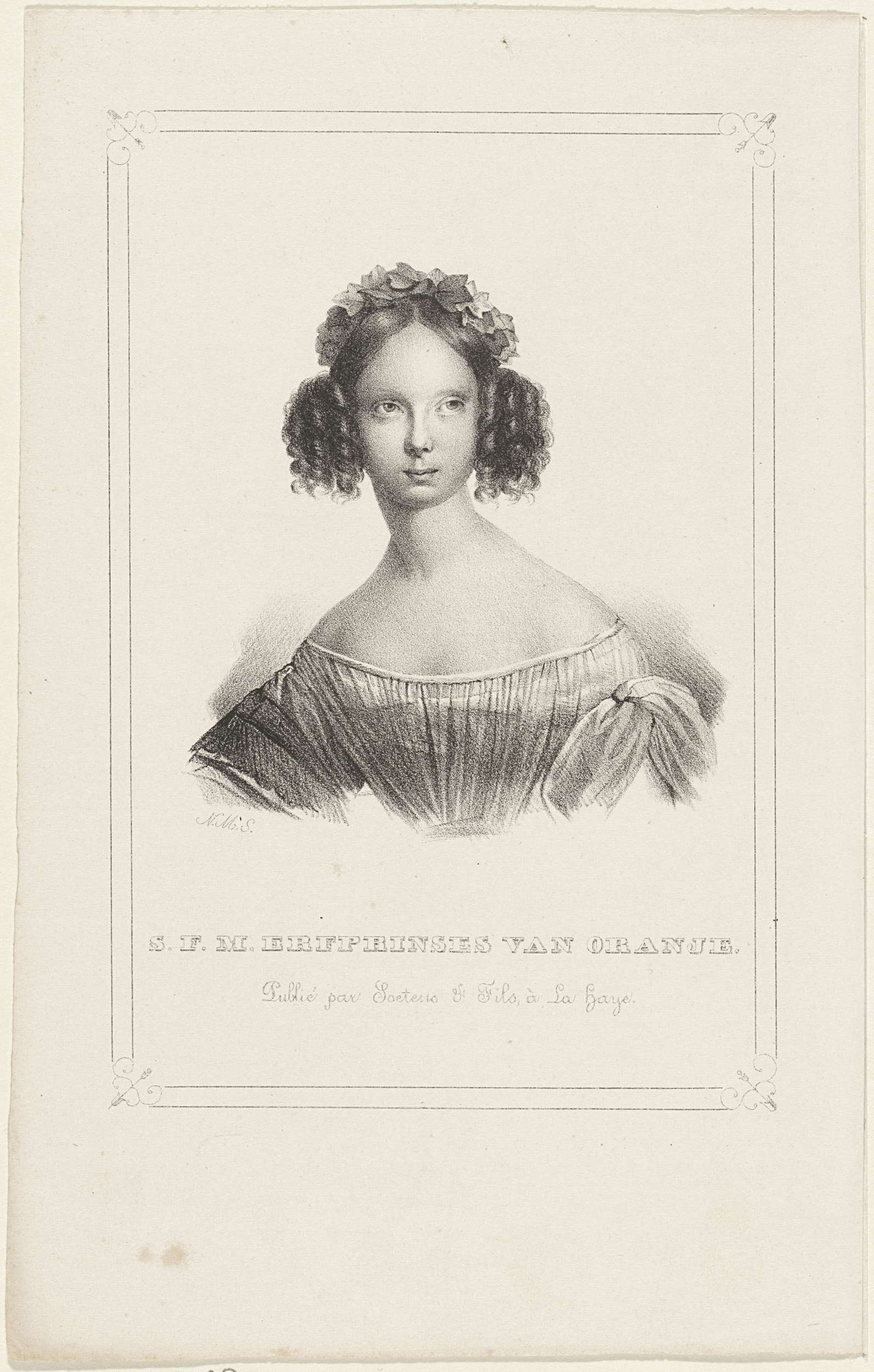 Portret van Sophie in een geornamenteerde rechthoek. In de ondermarge haar naam en titel.