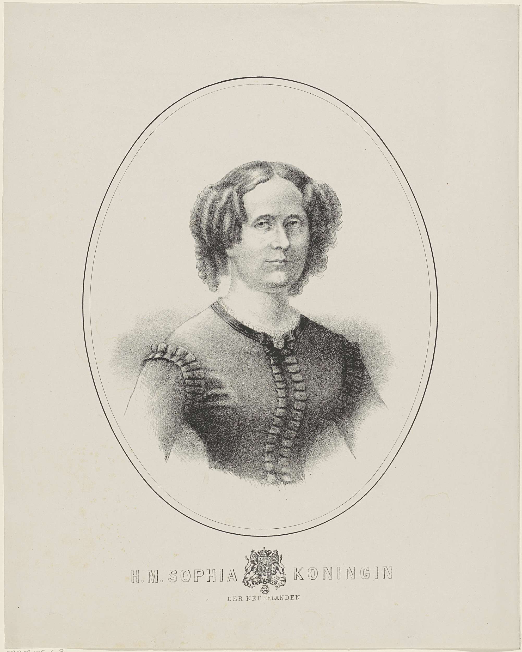 Portret van Sophie in een ovaal. In de ondermarge haar naam en titel.