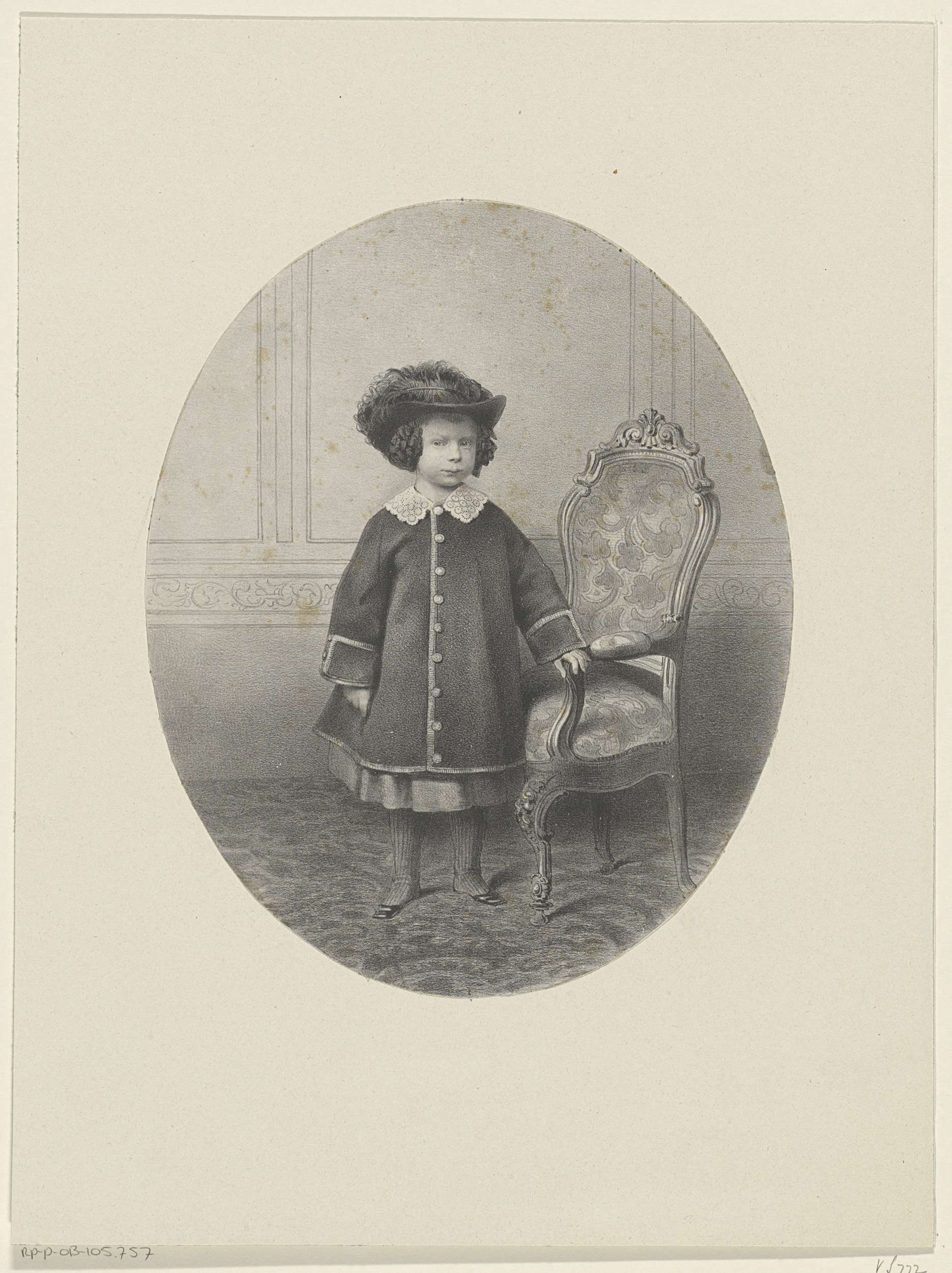 Portret van Alexander in een ovaal. Hij staat in een vertrek naast een stoel.
