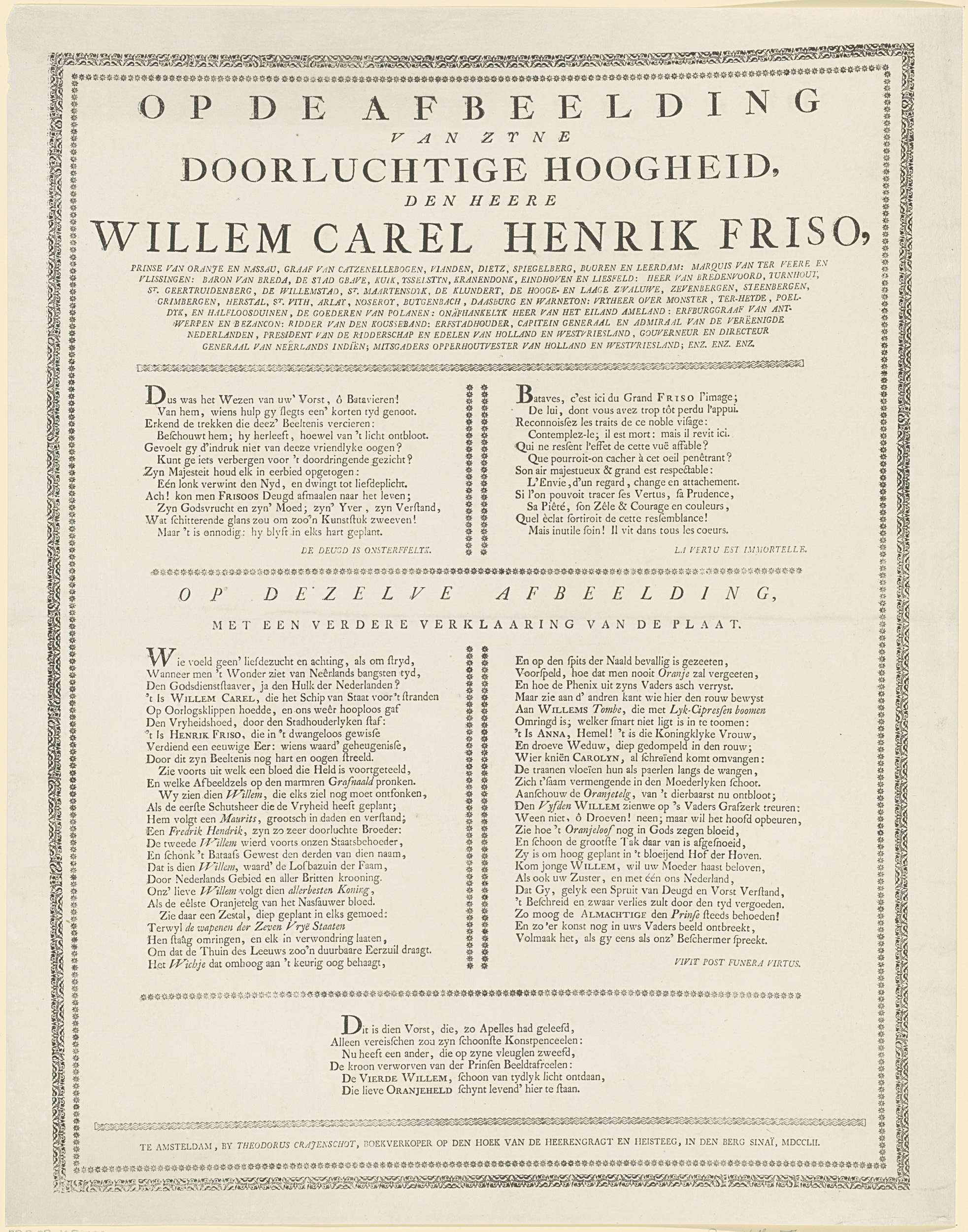 Tekst bij het portret van Willem IV, prins van Oranje-Nassau