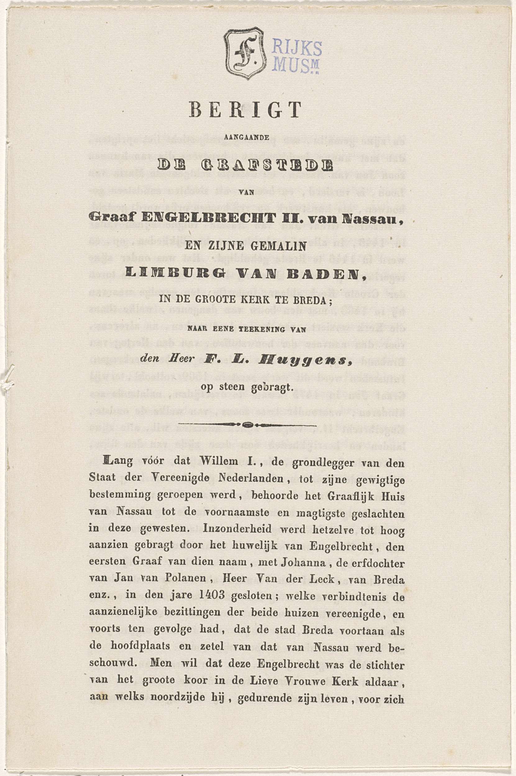Tekst bij het grafmonument voor Engelbrecht II, graaf van Nassau-Dillenburg-Breda, 1504
