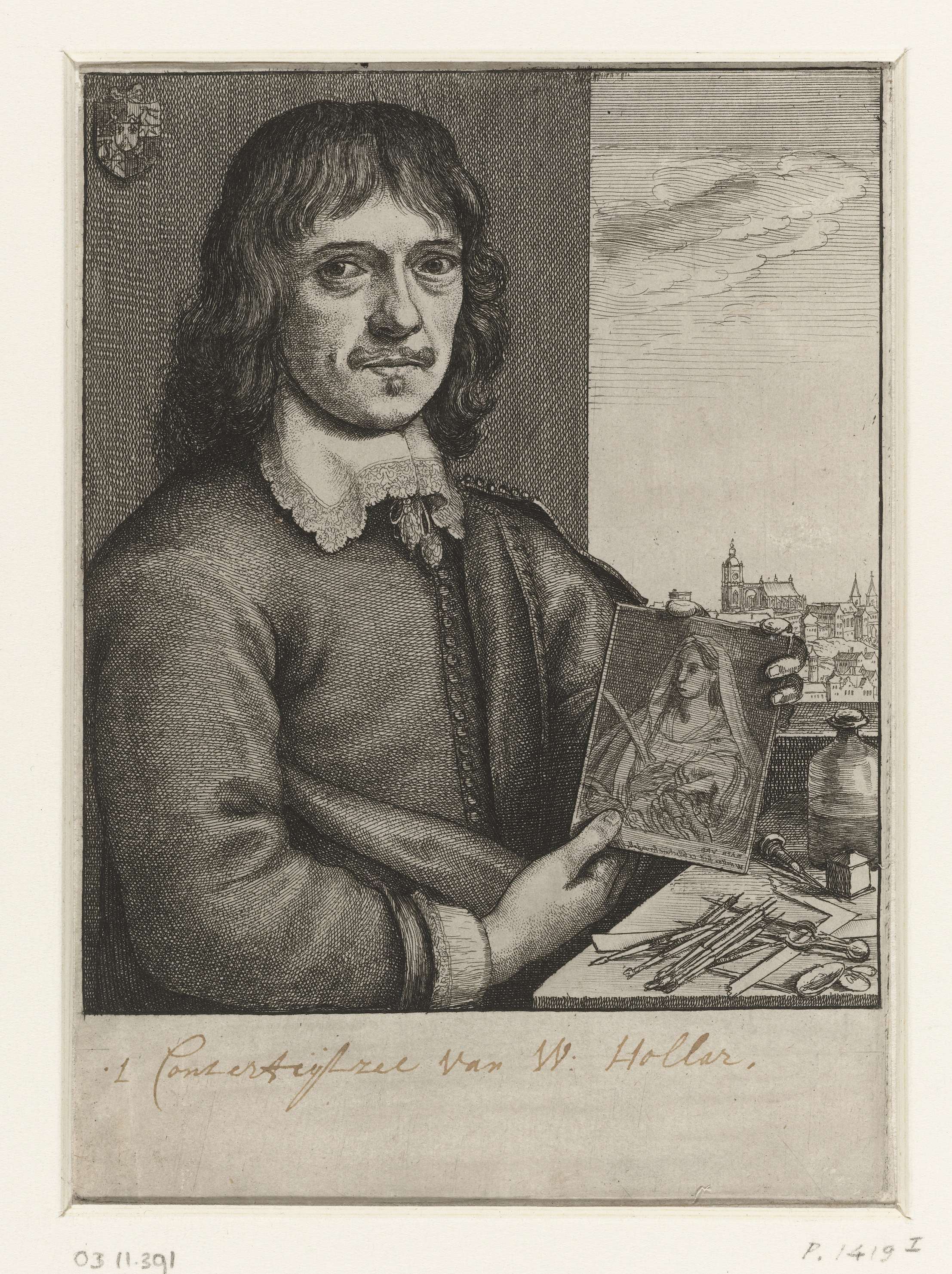 Zelfportret van de prentmaker en tekenaar Wenzel Hollar.