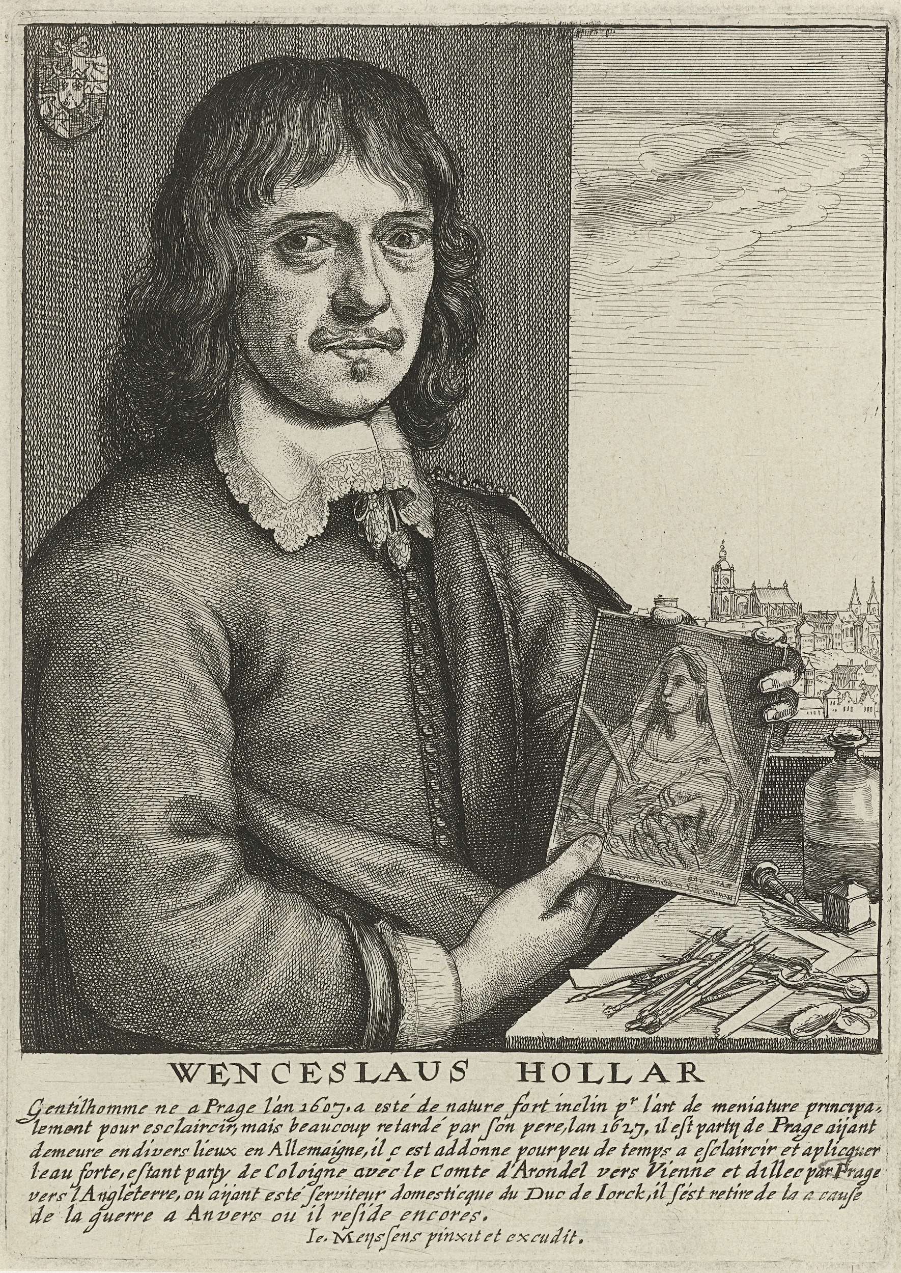 Zelfportret van de prentmaker en tekenaar Wenzel Hollar.