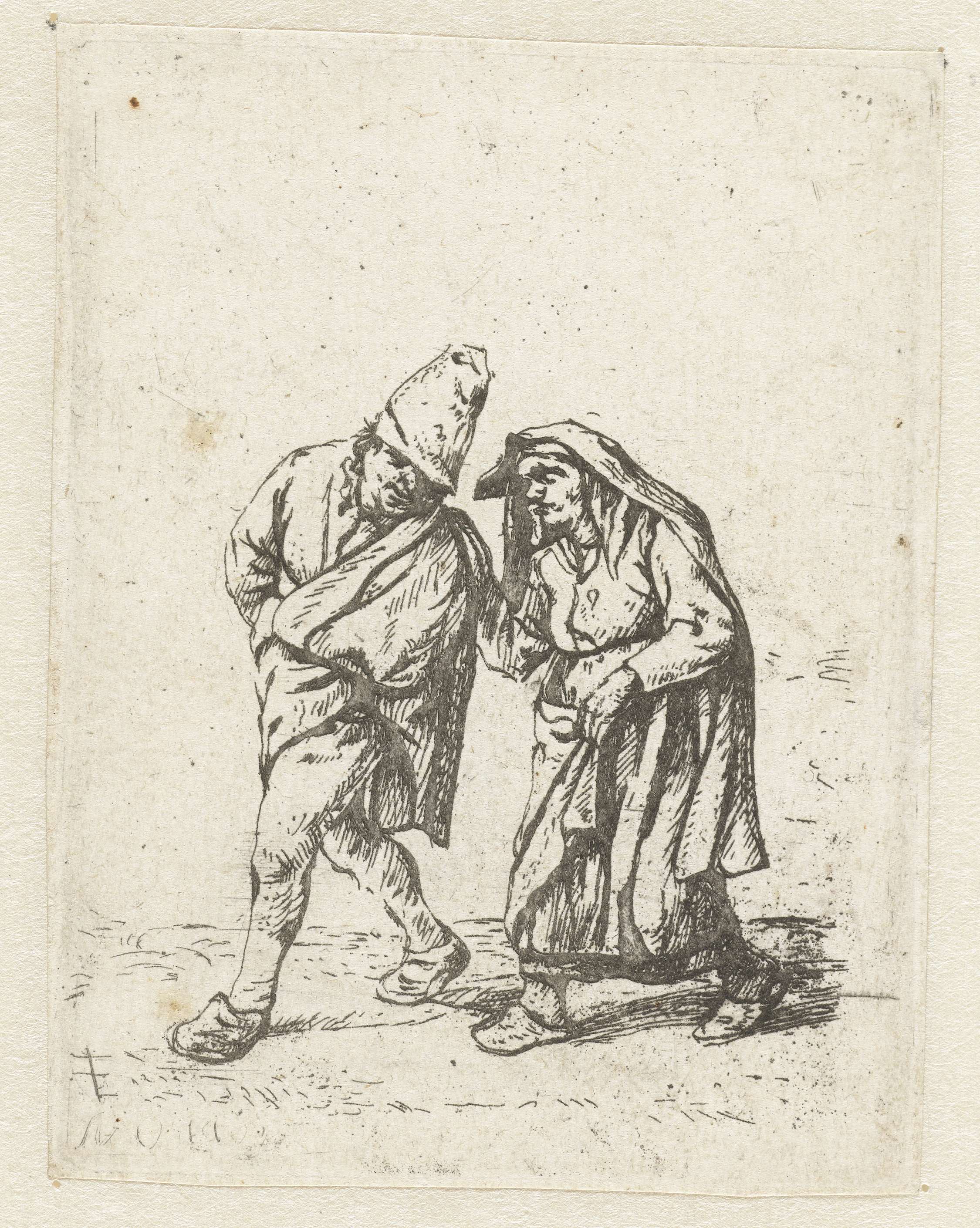 Wandelend boerenpaar is een kopie naar een prent van Adriaen van Ostade, de figuren zijn spiegelverkeerd weergegeven.