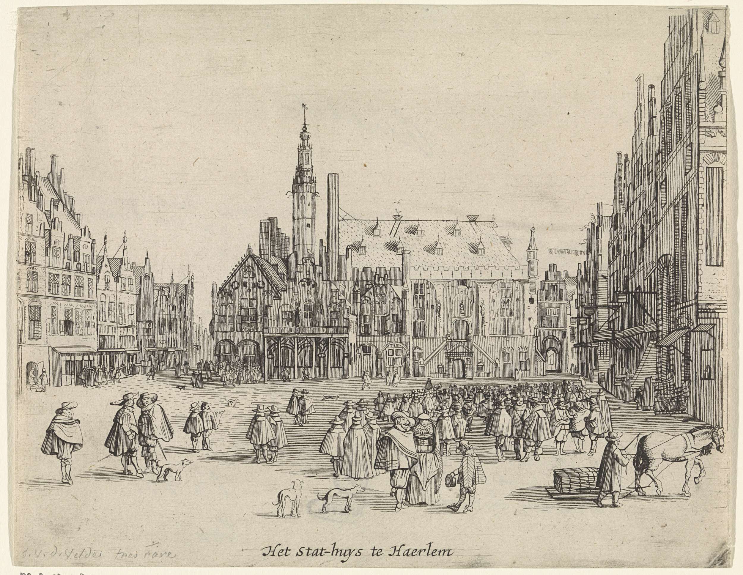 Gezicht op de Grote Markt met het stadhuis te Haarlem
