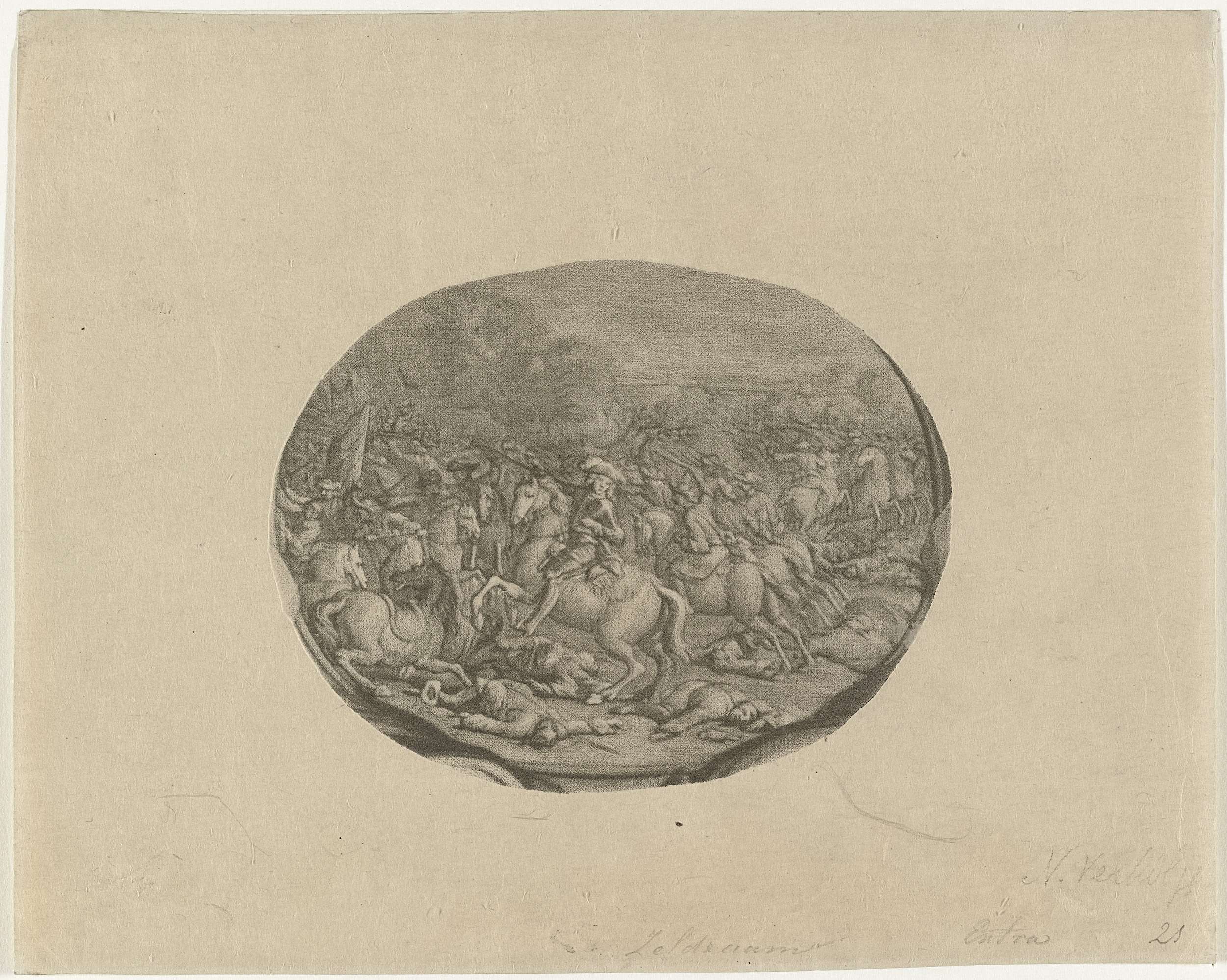 Vignet met een afbeelding van de slag bij Kalisch (29-10-1706), afkomstig uit het portret van Frederik Augustus II, hertog van Saksen en koning van Polen