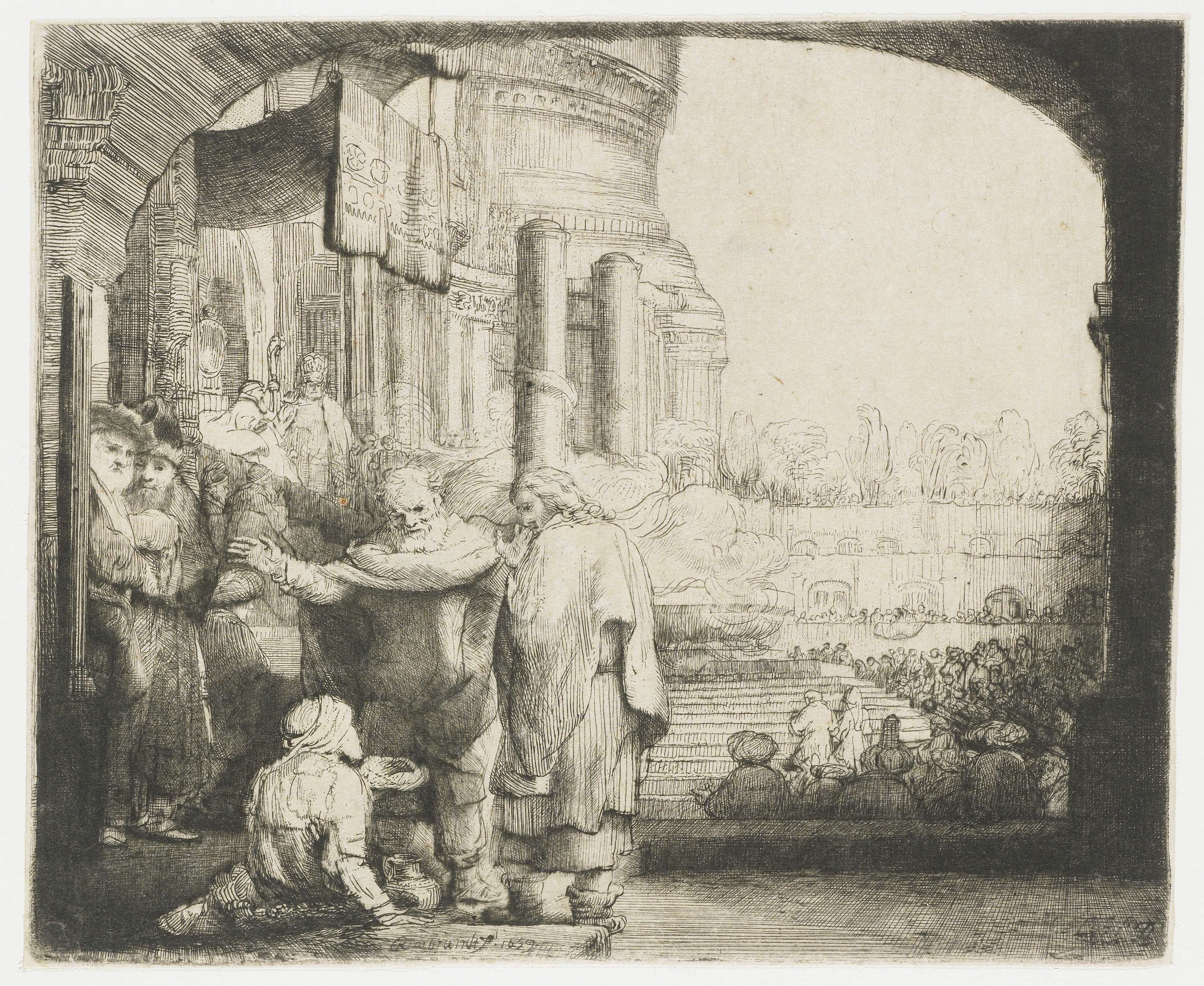 Petrus en Johannes genezen een verlamde man bij de tempelpoort