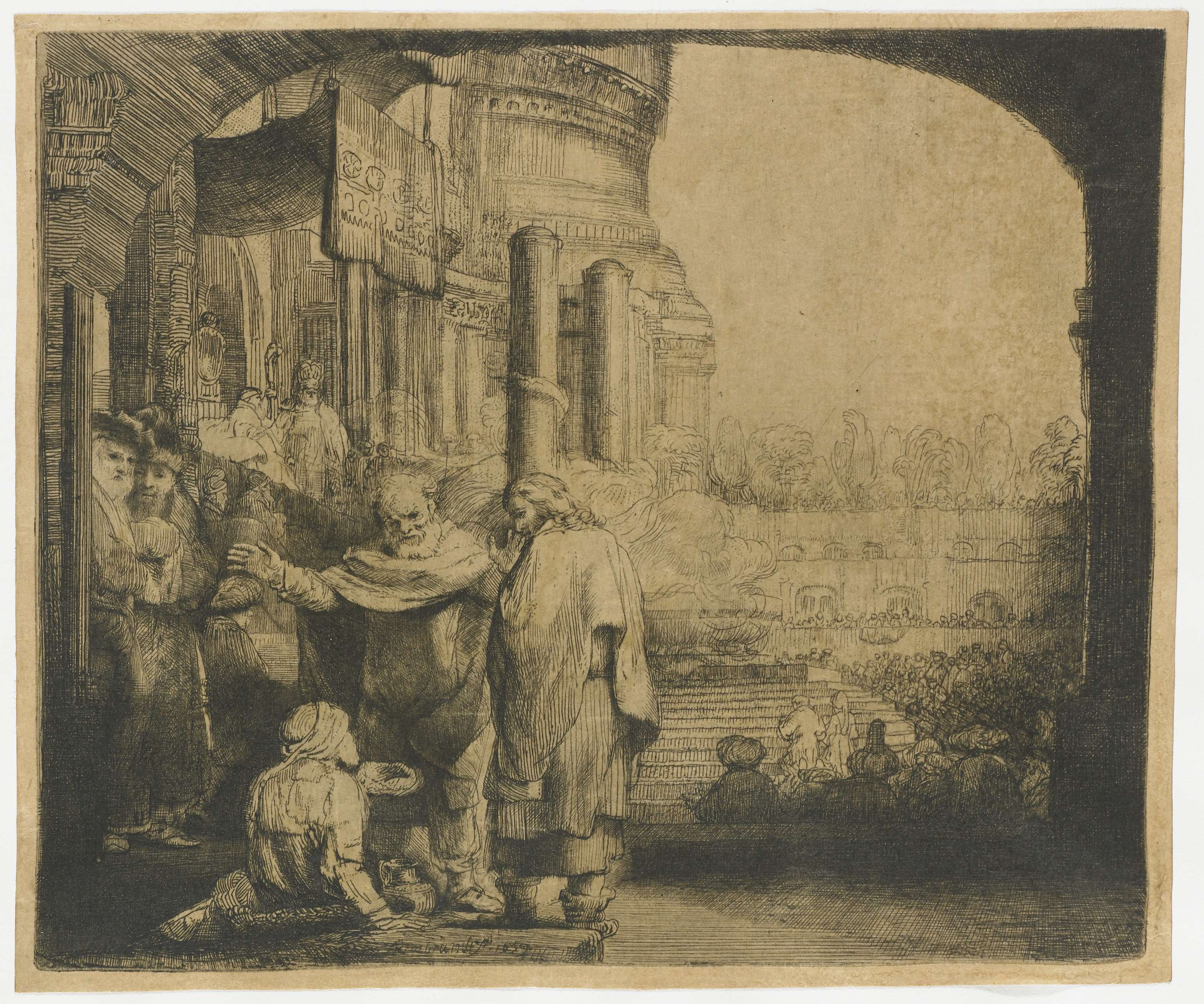 Petrus en Johannes genezen een verlamde man bij de tempelpoort