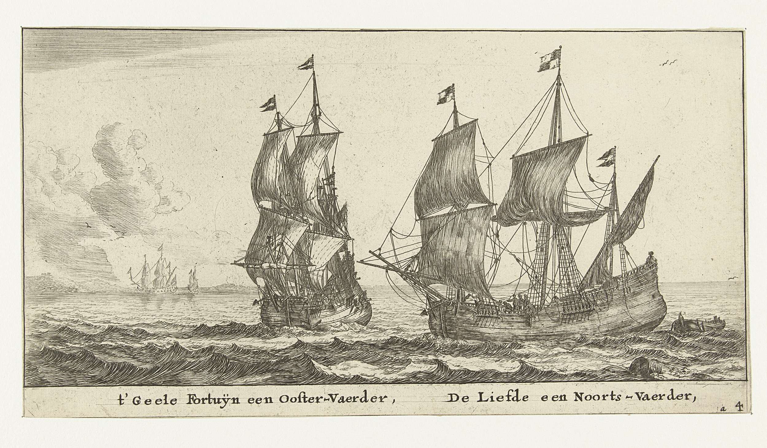 't Gele Fortuin, een koopvaardijschip varend op de Baltische landen, en De Liefde, een koopvaardijschip varend op Noorwegen.