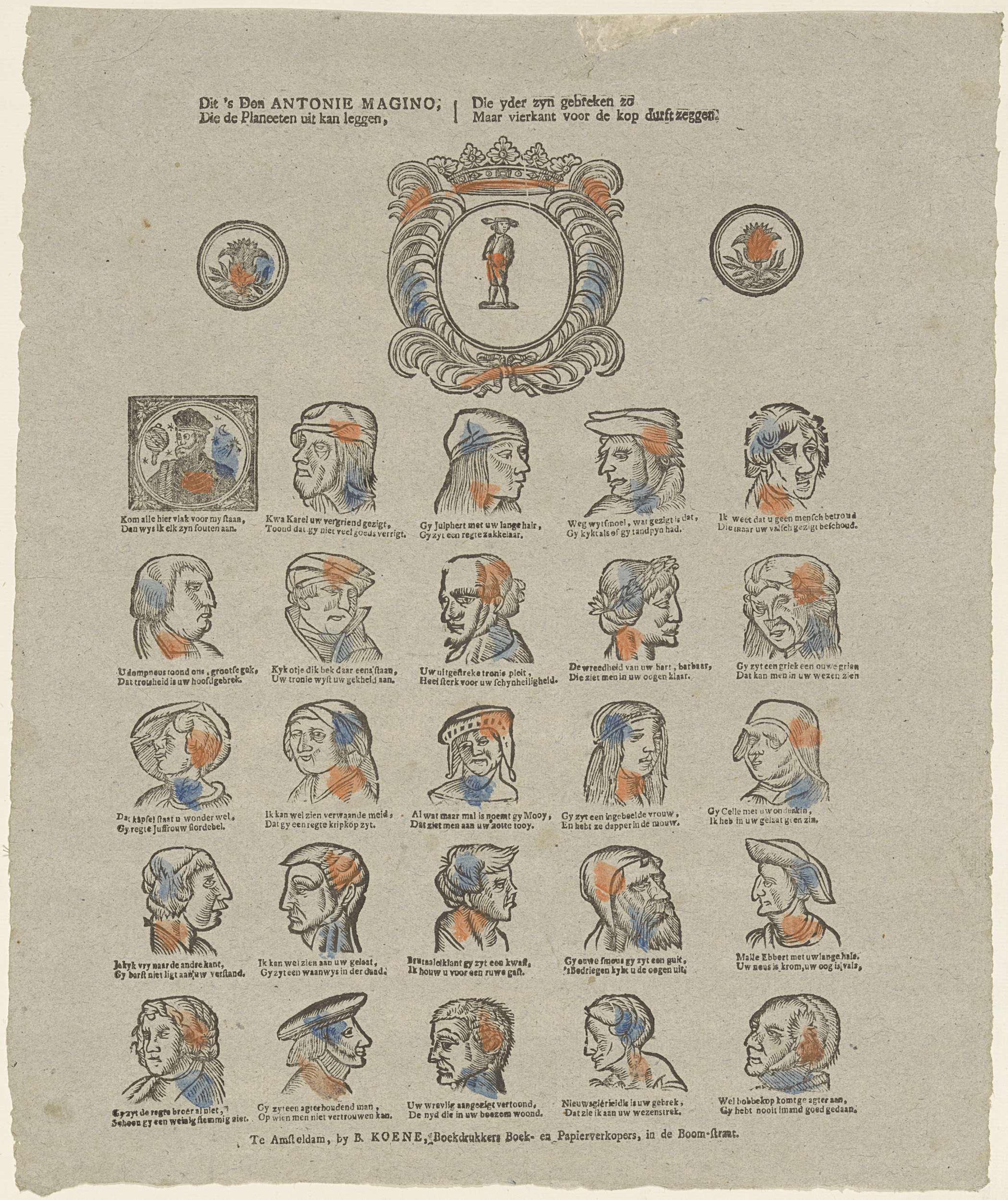 Dit 's Don Antonie Magino, / Die de planeeten uit kan leggen, / Die yder zyn gebreken zo / Maar vierkant voor de kop durft zeggen