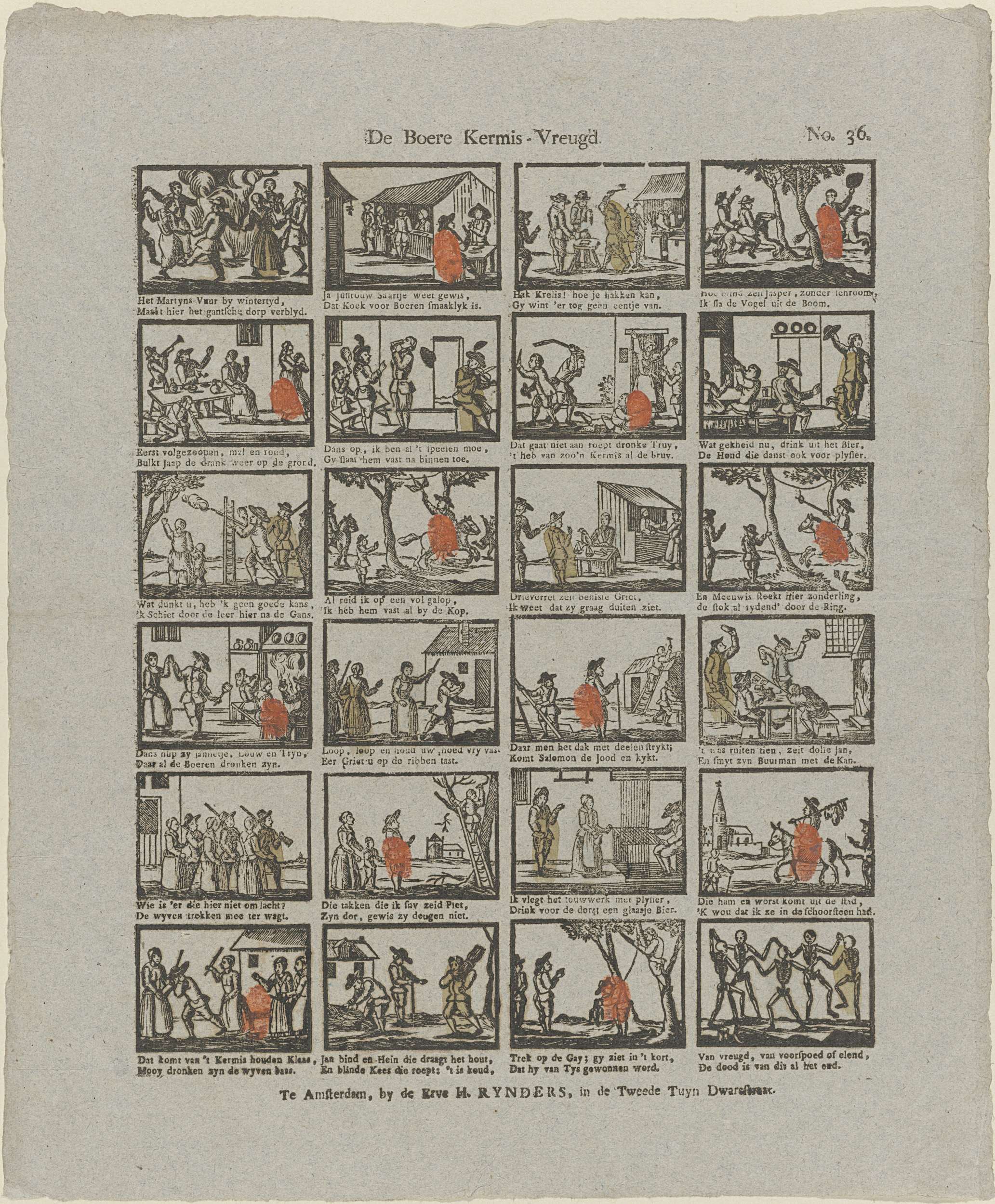 Blad met 24 kermistaferelen. Onder elke afbeelding een tweeregelig vers. Genummerd rechtsboven: No. 36.