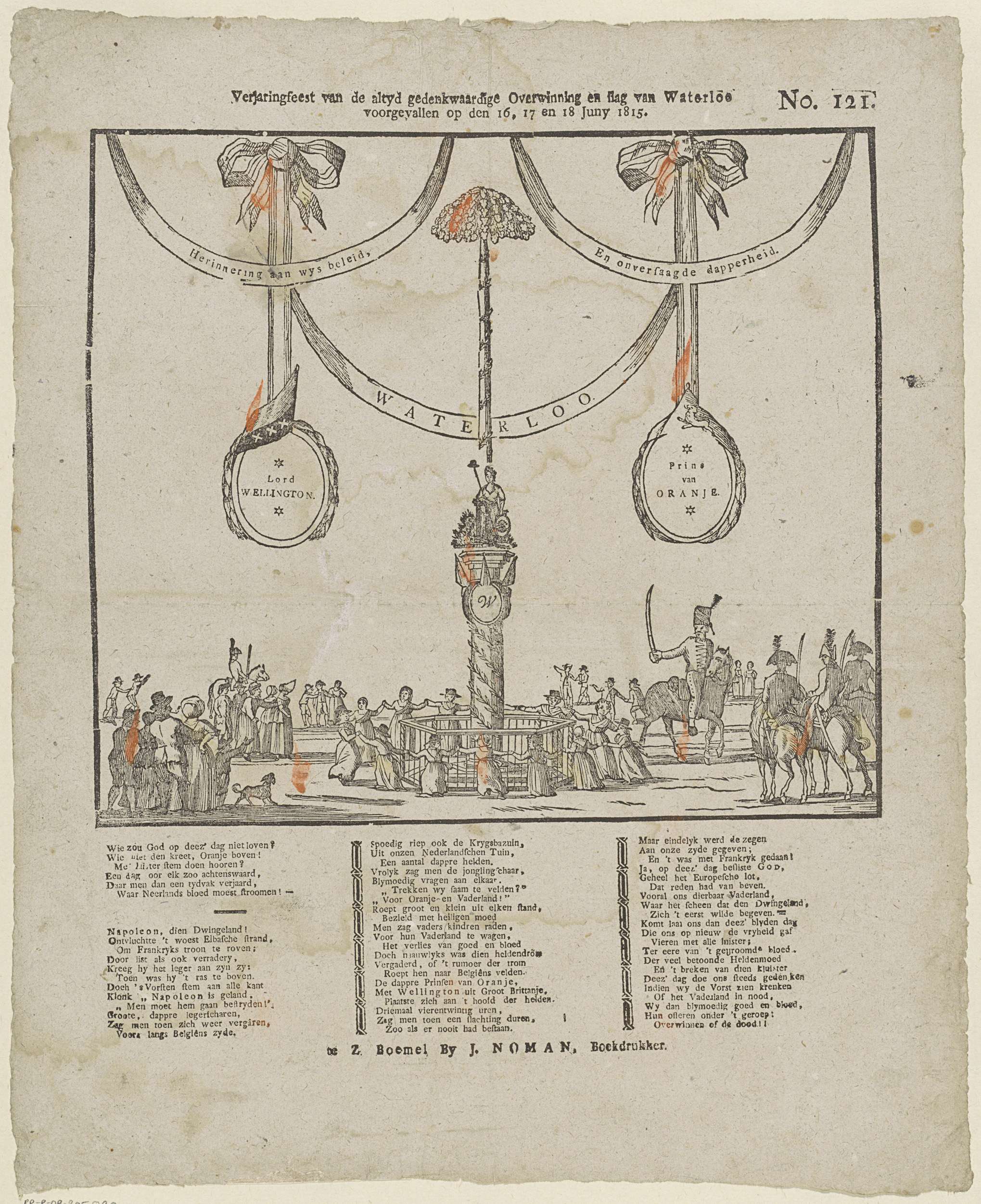 Verjaringfeest van de altyd gedenkwaardige overwinning en slag van Waterloo / voorgevallen op den 16, 17 en 18 juny 1815