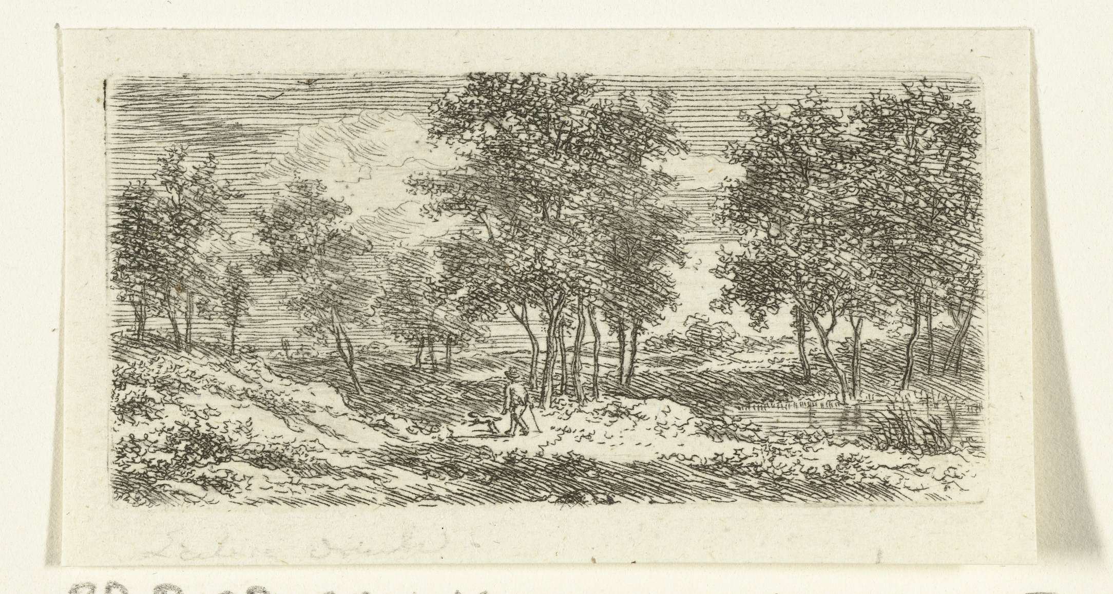 Landschap met wandelaar en hond