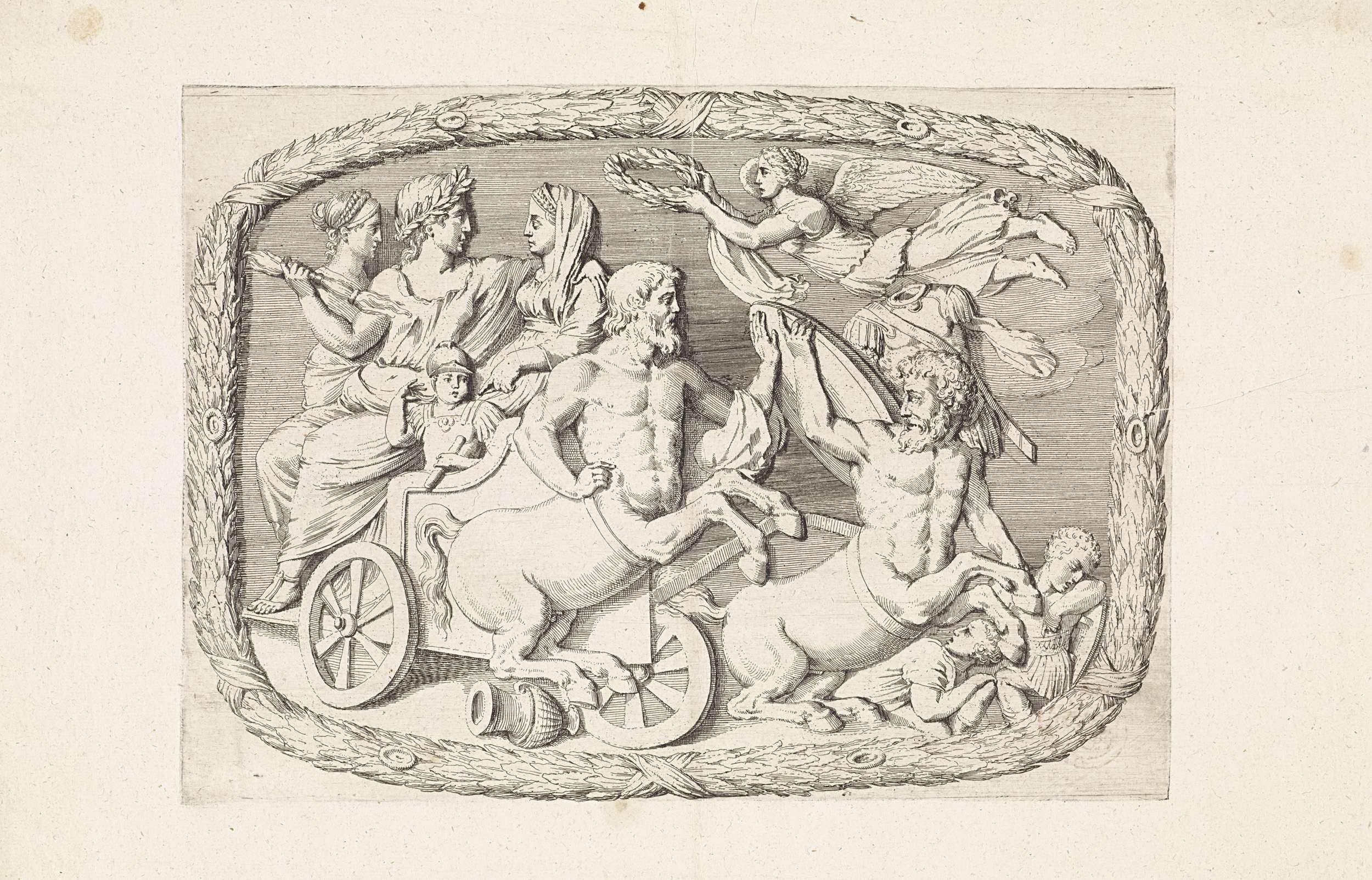 Een camee met een voorstelling van de triomf van Germanicus en Agrippina (of de triomf van Constantijn). Een Romeinse veldheer met zijn echtgenote in een triomfwagen getrokken door twee centauren.