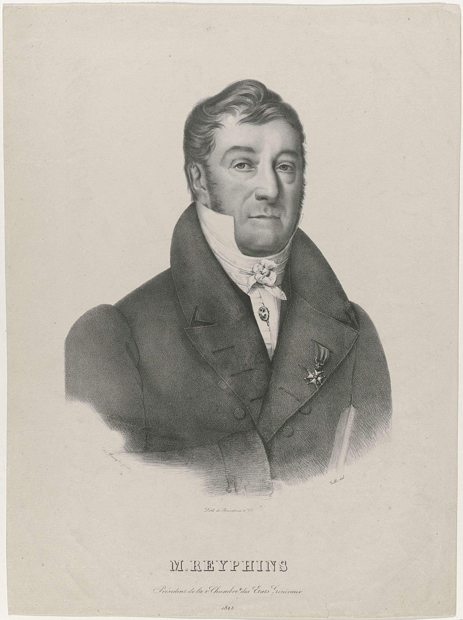 Portret van Lodewijk Antoon Reyphins, voorzitter van de Tweede Kamer der Staten-Generaal, van oktober 1828 tot oktober 1829. Onderdeel van een groep portretten van personen die aan de Belgische Revolutie hebben deelgenomen of daardoor vermaard zijn.