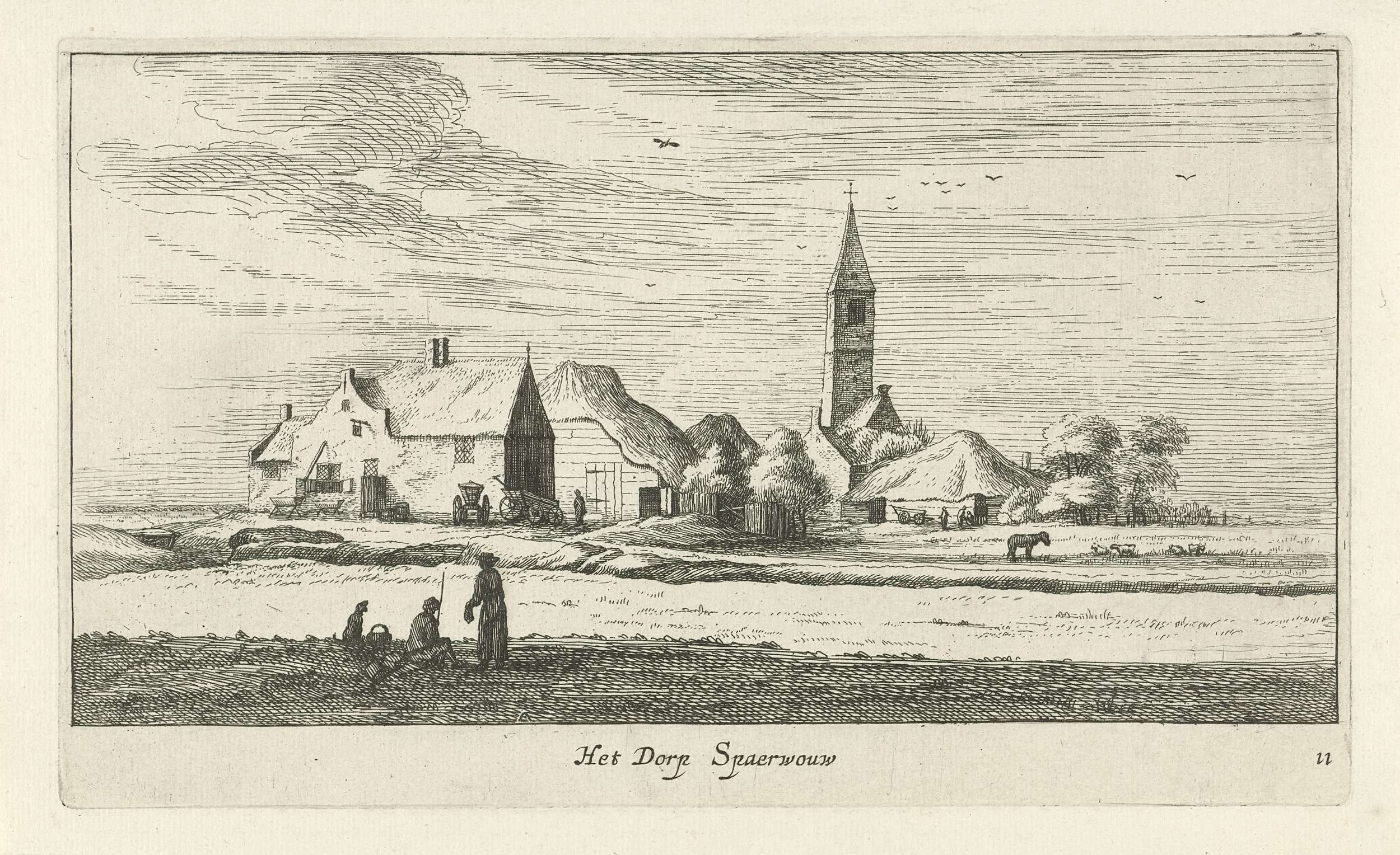 Gezicht op het dorp Spaarnwoude, met in het midden de kerk. De prent is deel van een serie landschappen met dorpen rondom Amsterdam. Rechtsonder genummerd: 11.