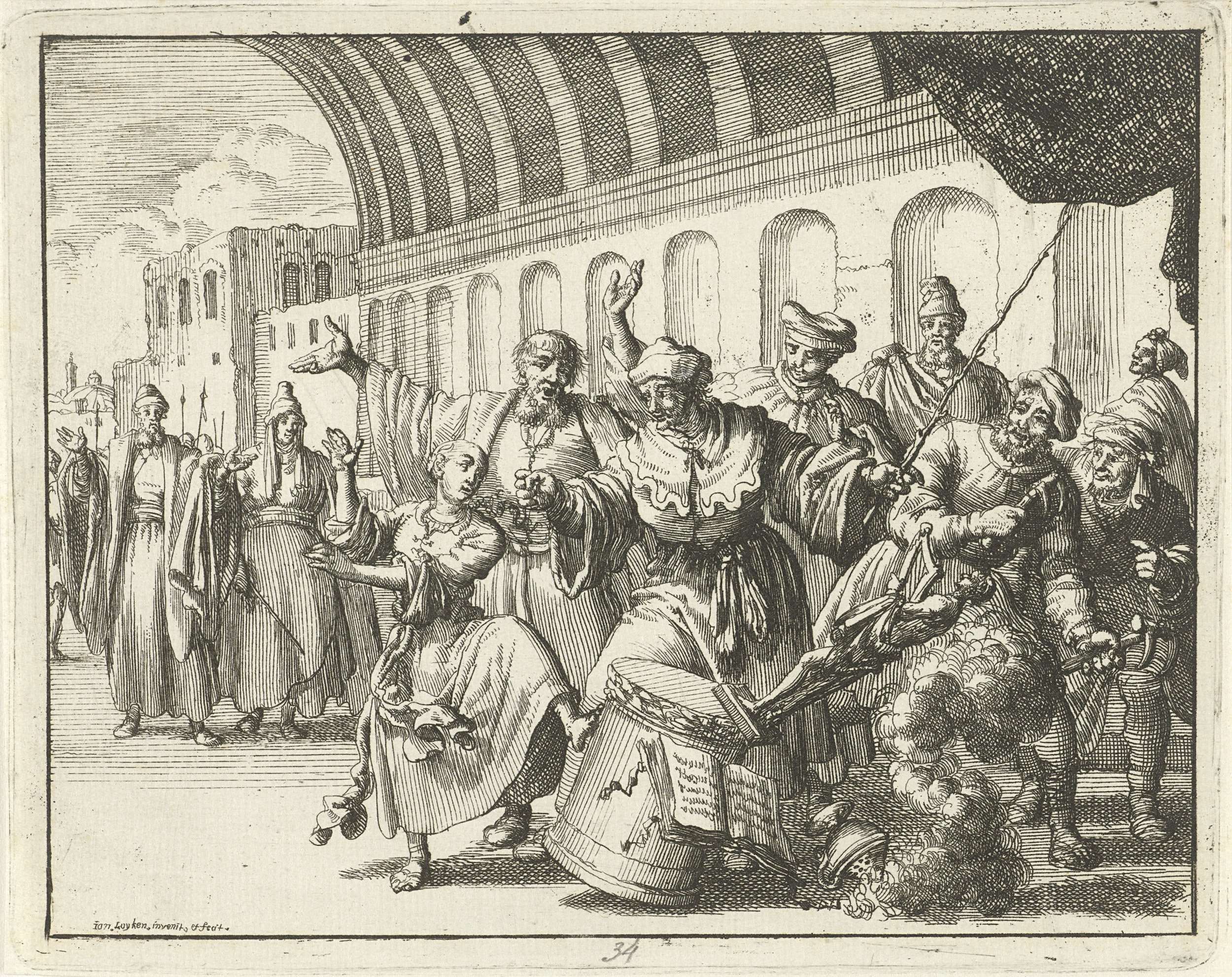 Eulalia van Mérida schopt een Romeins altaar met beeld van Apollo om