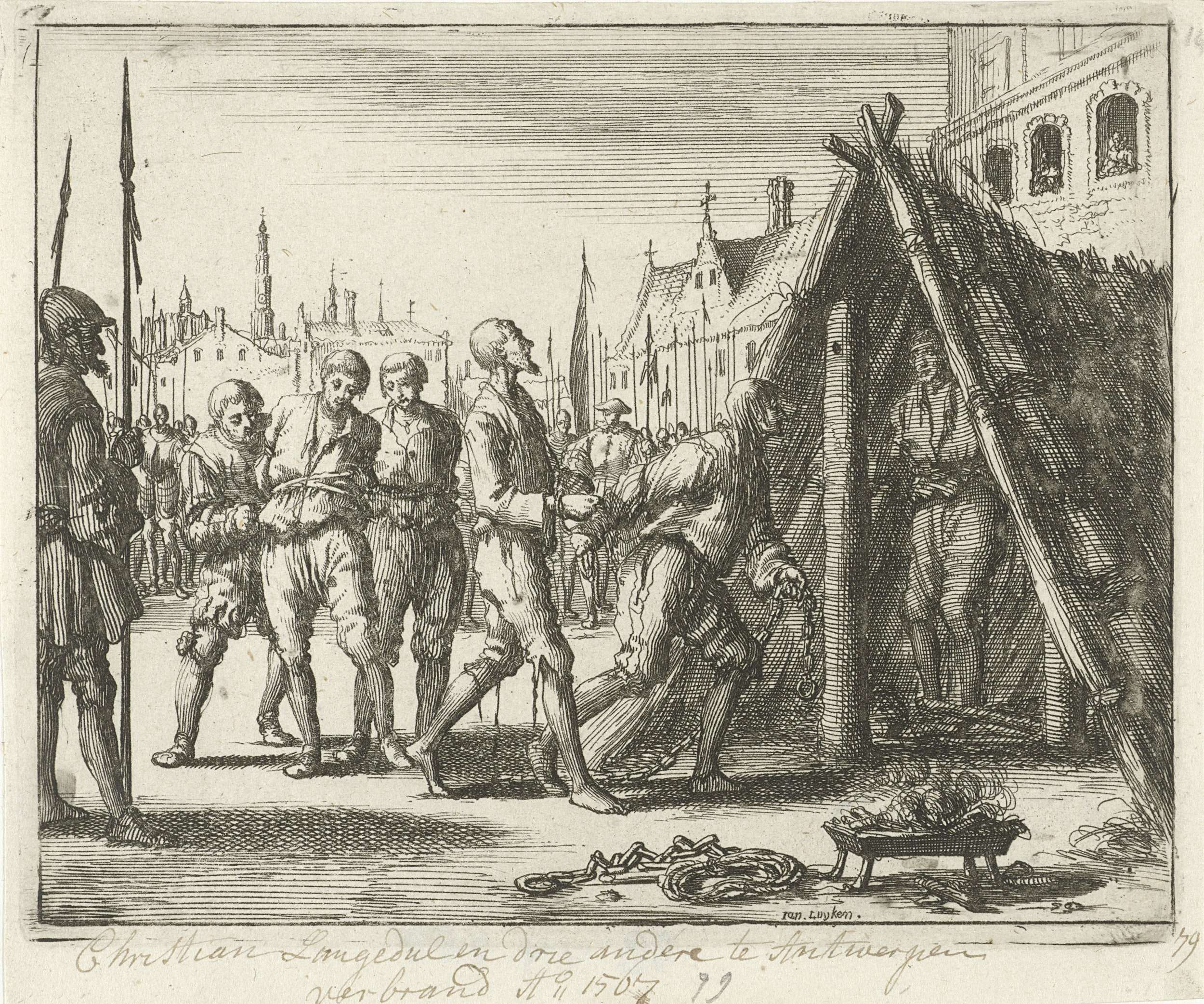 Christiaan Langedul en drie anderen te Antwerpen voor de brandstapel, 1567