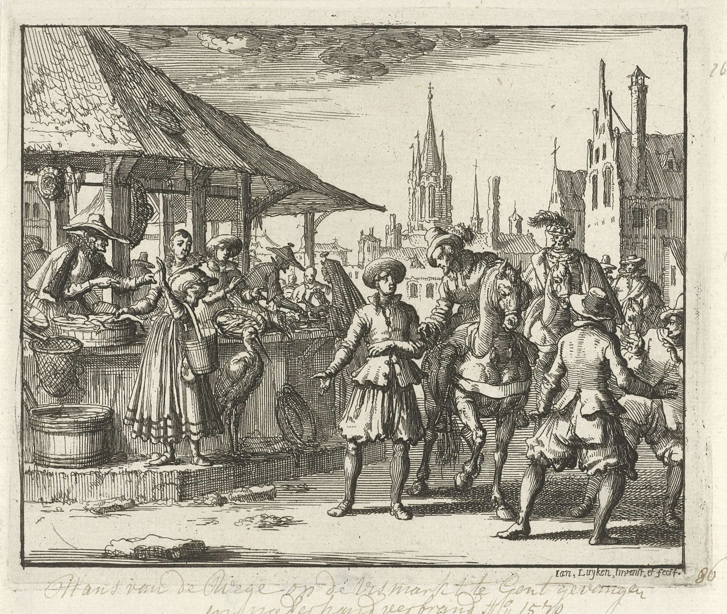 Arrestatie van Hans van der Wege op de Vismarkt te Gent, 1570