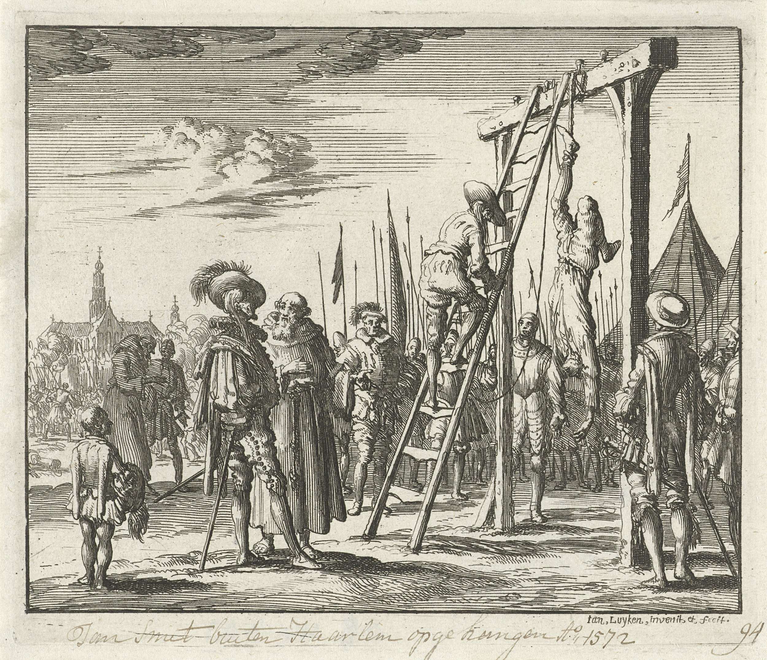 Jan Smit te Haarlem aan één been opgehangen, 1572