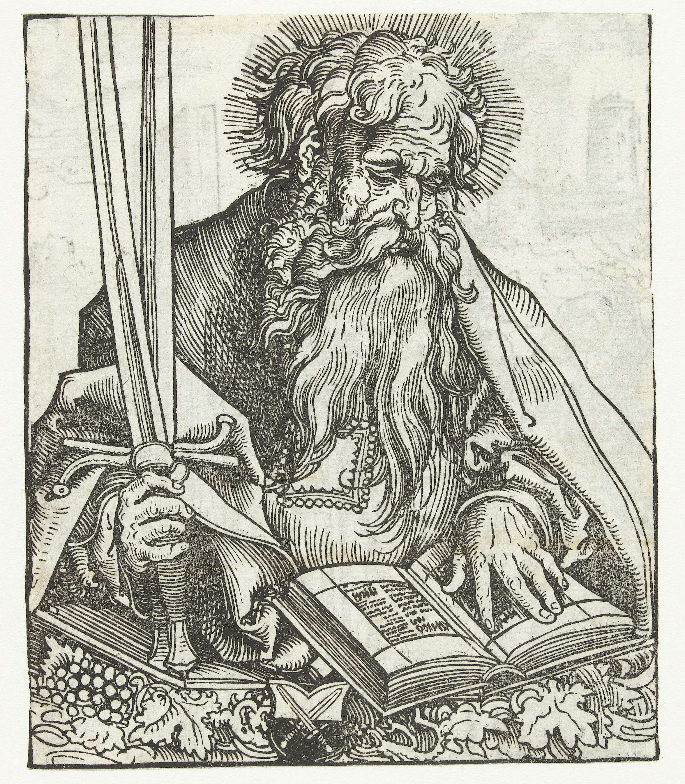 Reliekbuste van Paulus met een boek en zwaard waarvan de voet versierd is met wijnranken ornament en een schild draagt met het keurvorstelijk wapen van Saksen.