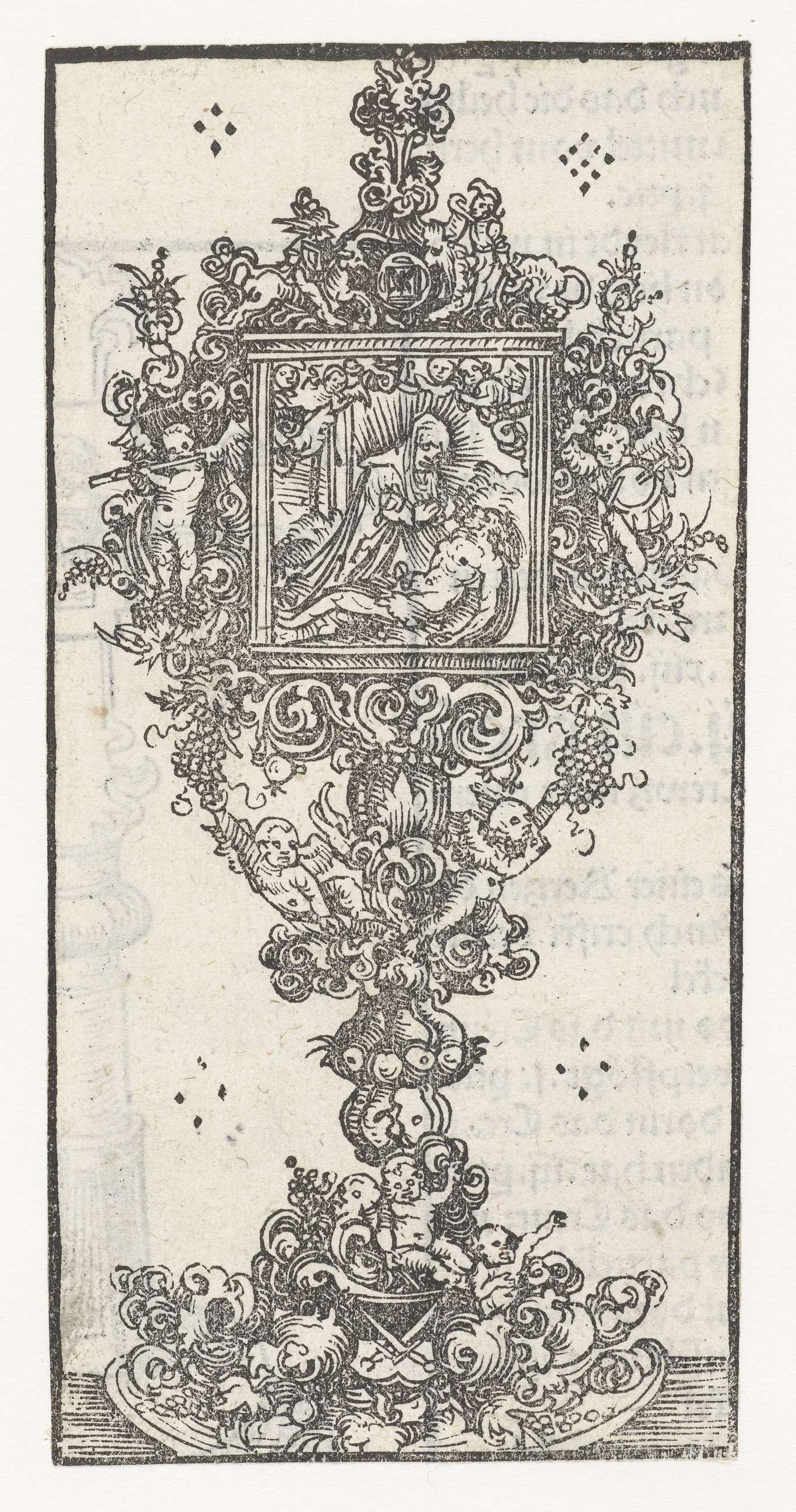 Reliekhouder met de bewening van Christus. Op het verso is een fragment Duitse tekst en een deel van een reliekhouder in de vorm van een kruis zichtbaar.