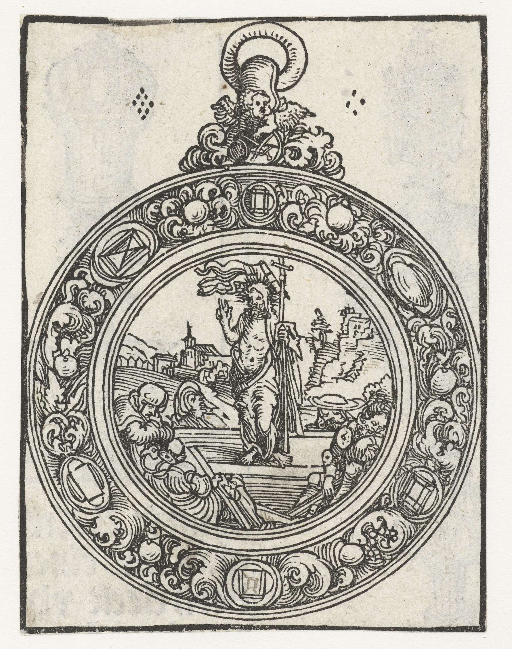 Reliekhouder in vorm van medaillon met de opstanding van Christus