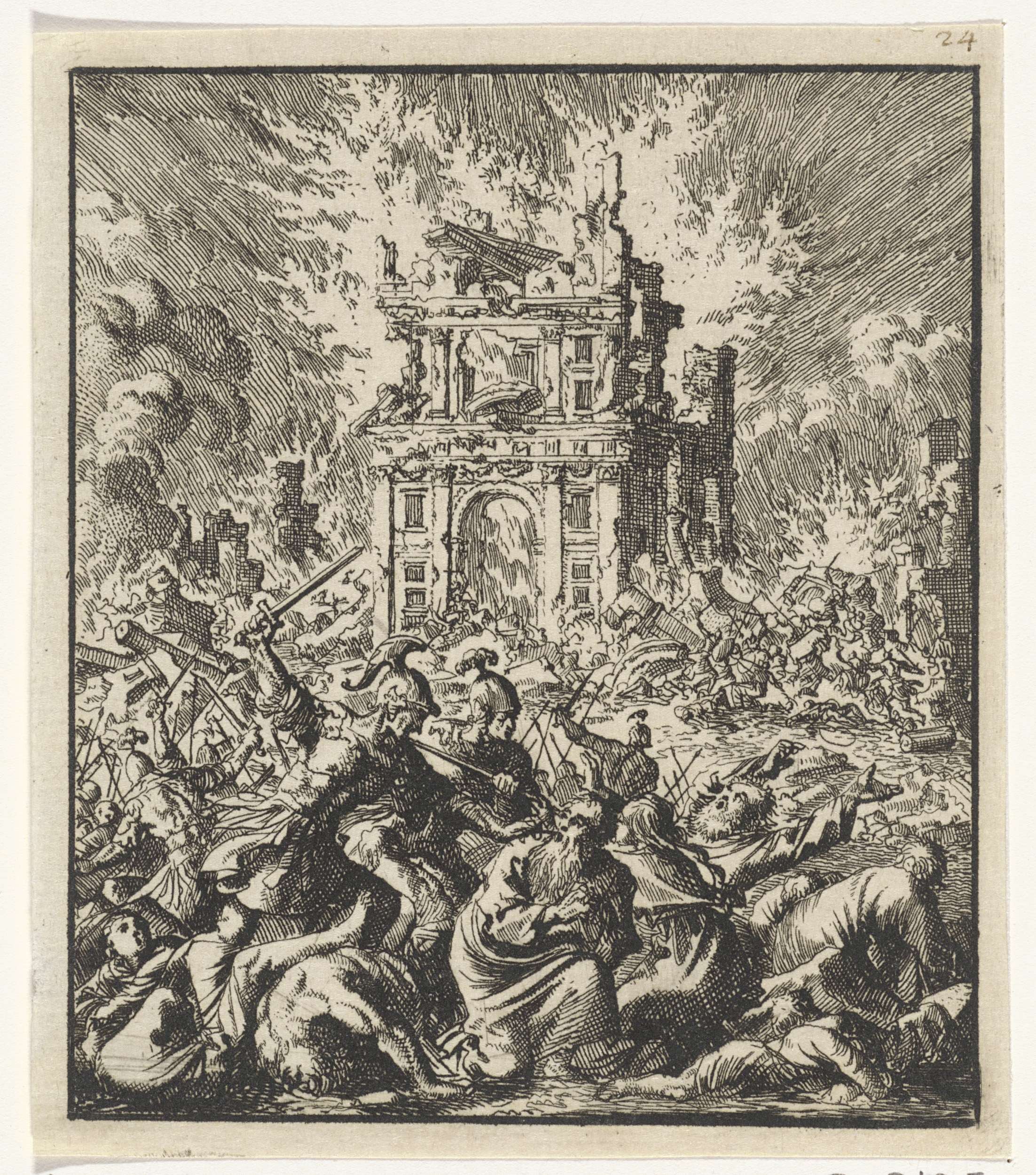 Romeinen doden de Joden, terwijl de Tempel brandt