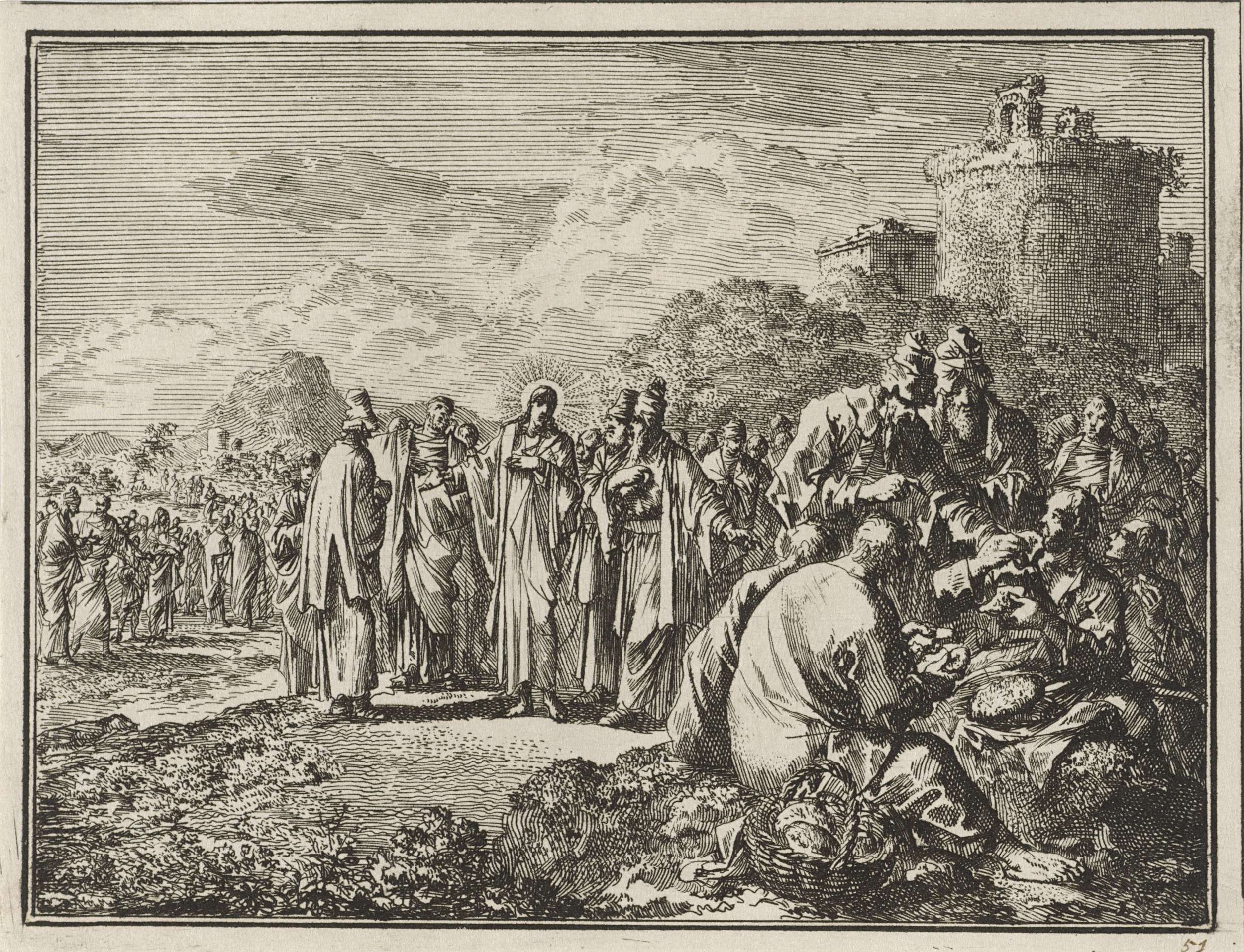 Farizeeën wijzen Christus op de discipelen die eten met ongewassen handen
