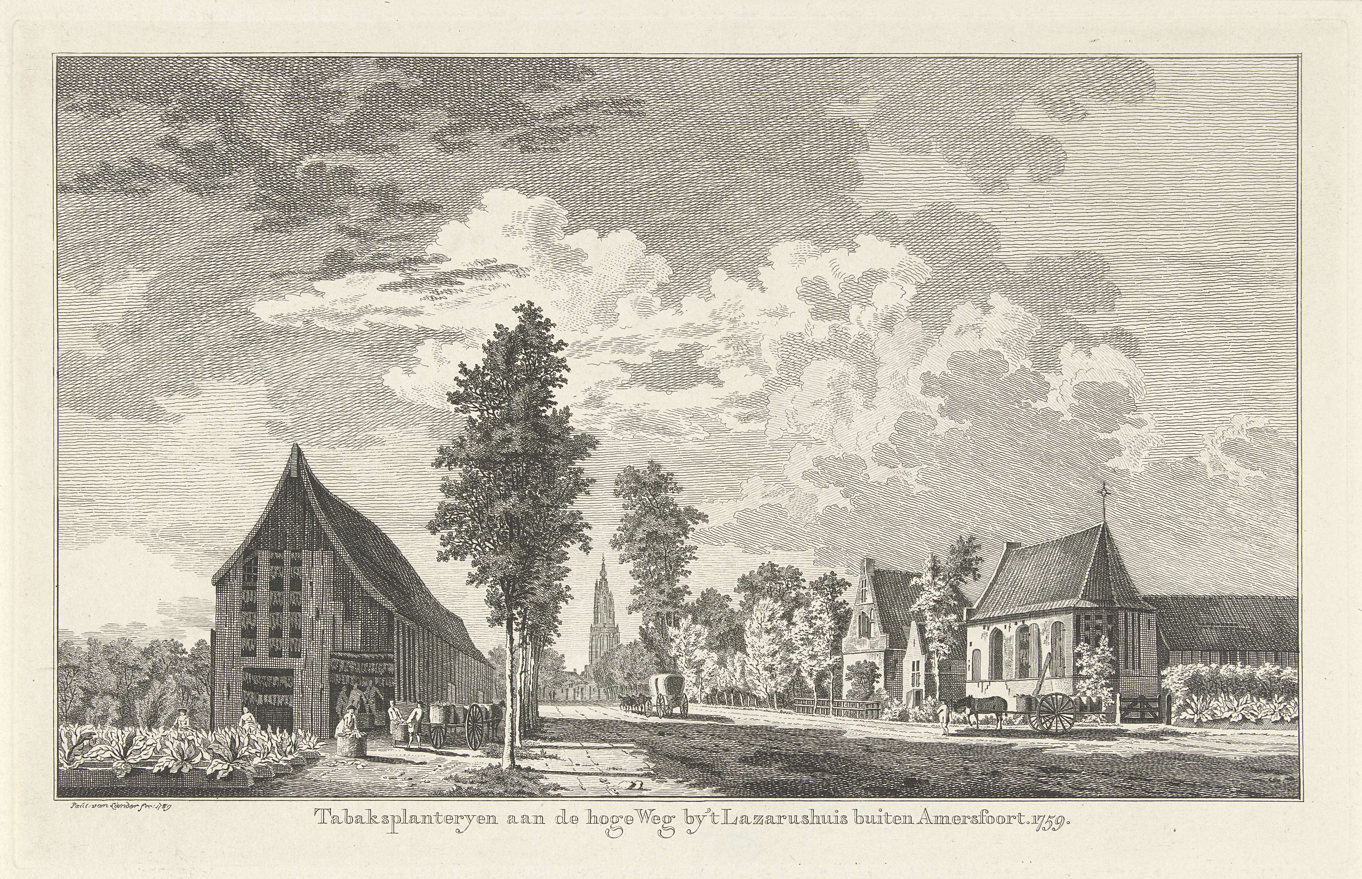 Gezicht op de tabaksplantage buiten Amersfoort, 1759