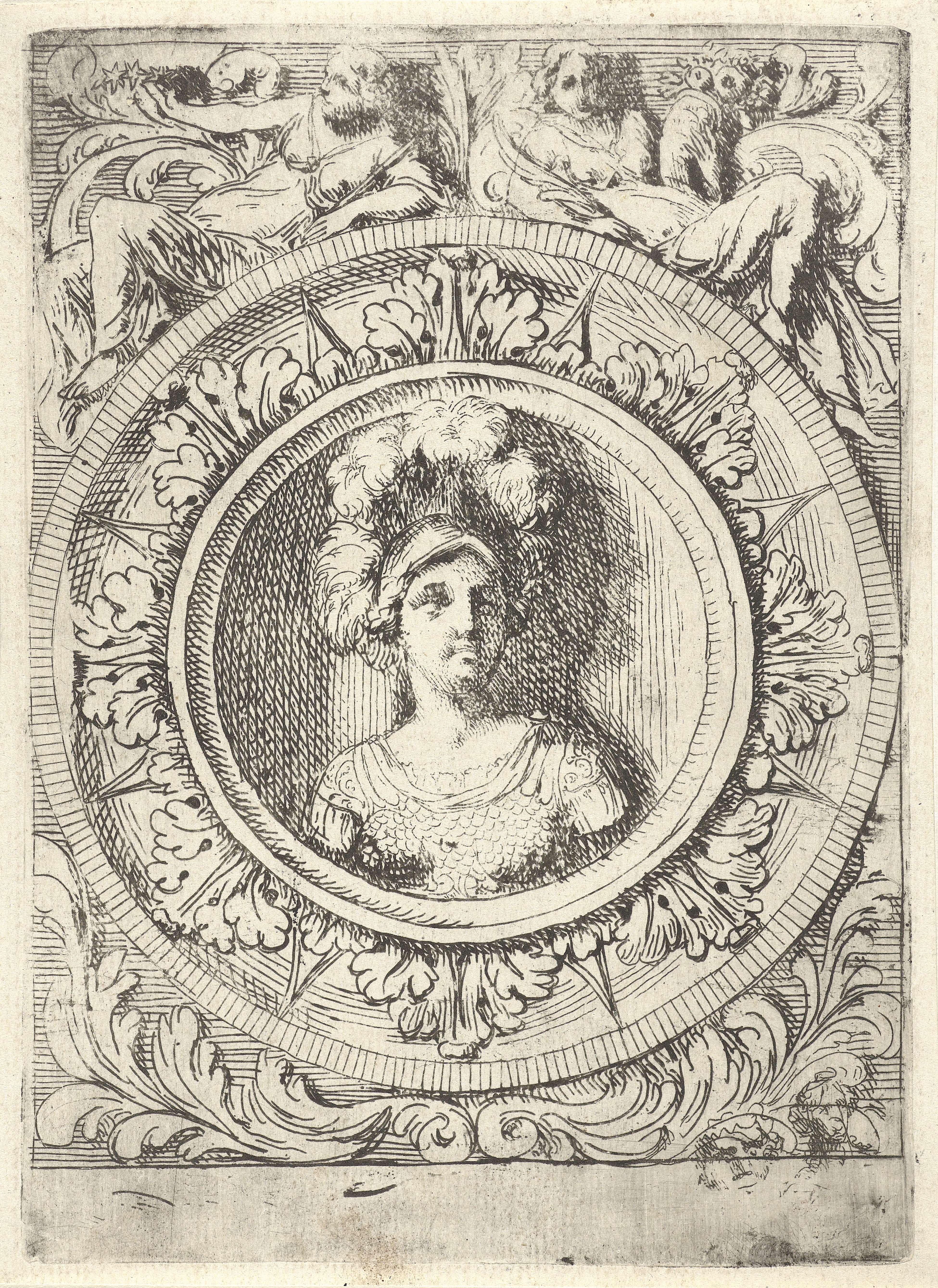 Ornamenteel medaillon met buste van de krijgsgodin Bellona.