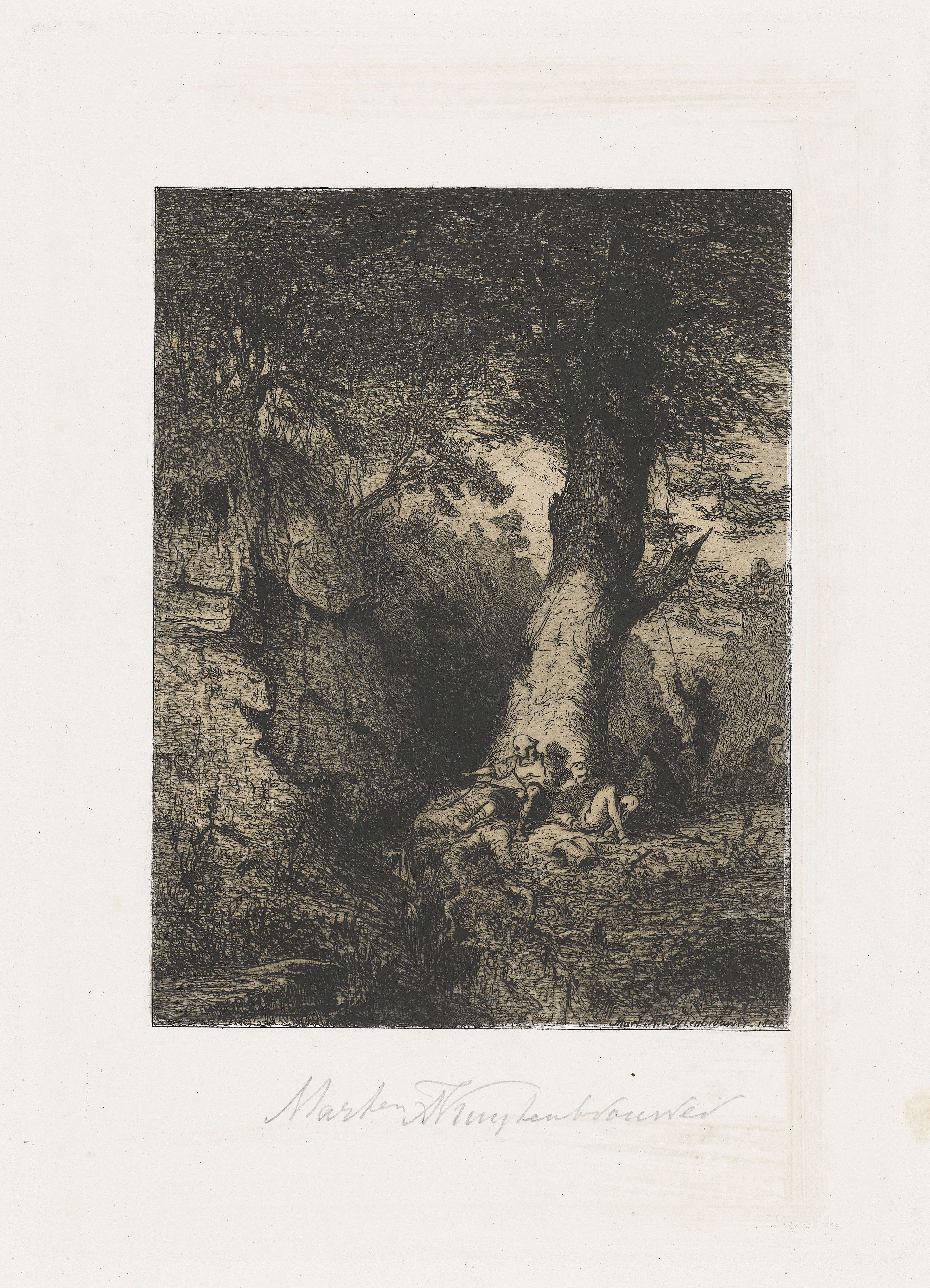 Rustende krijgsmannen onder een boom