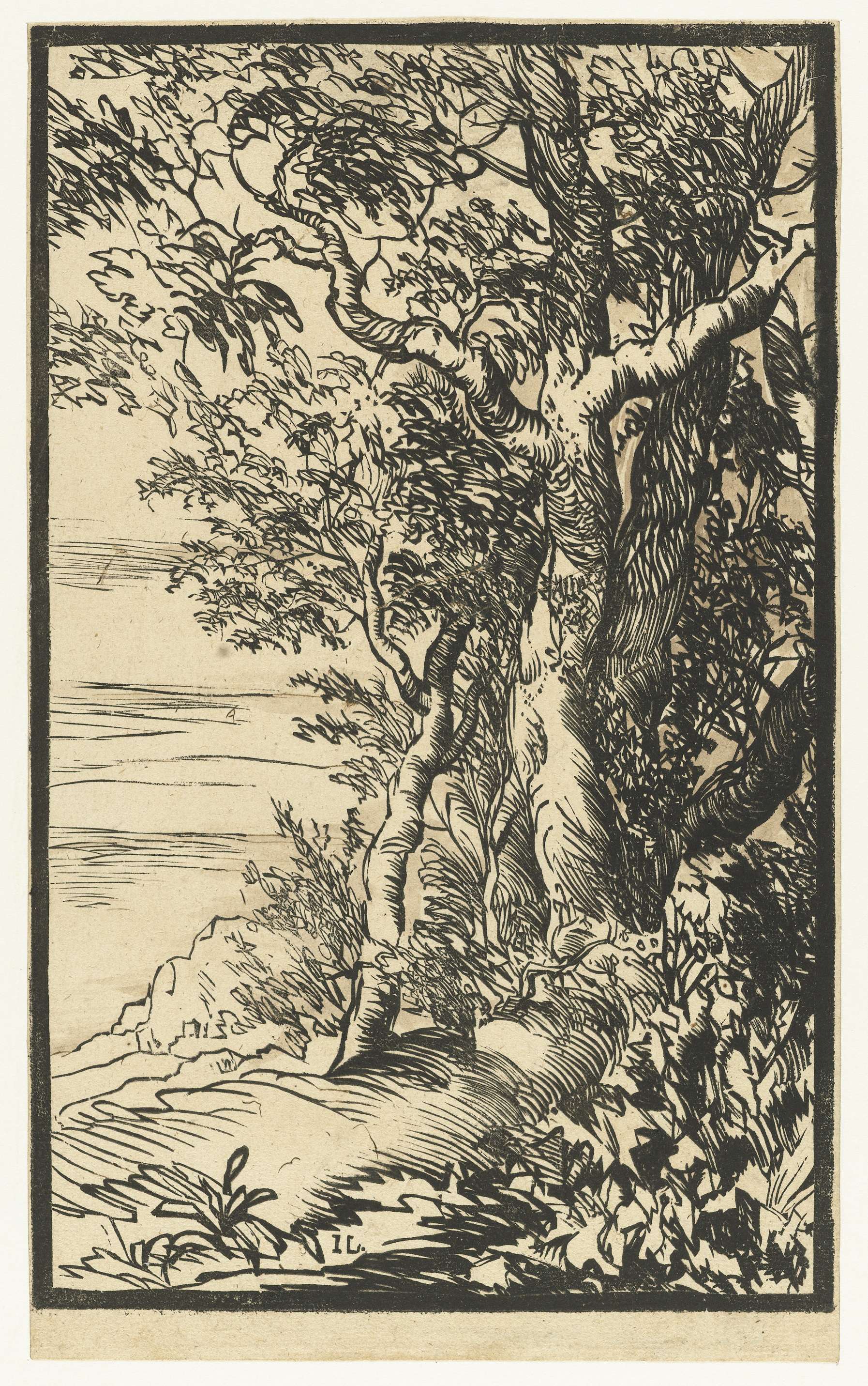 De eigenzinnige wijze waarop de houtsnede techniek is toegepast doet vermoeden dat Lievens zelf dit landschap in het hout heeft gesneden.