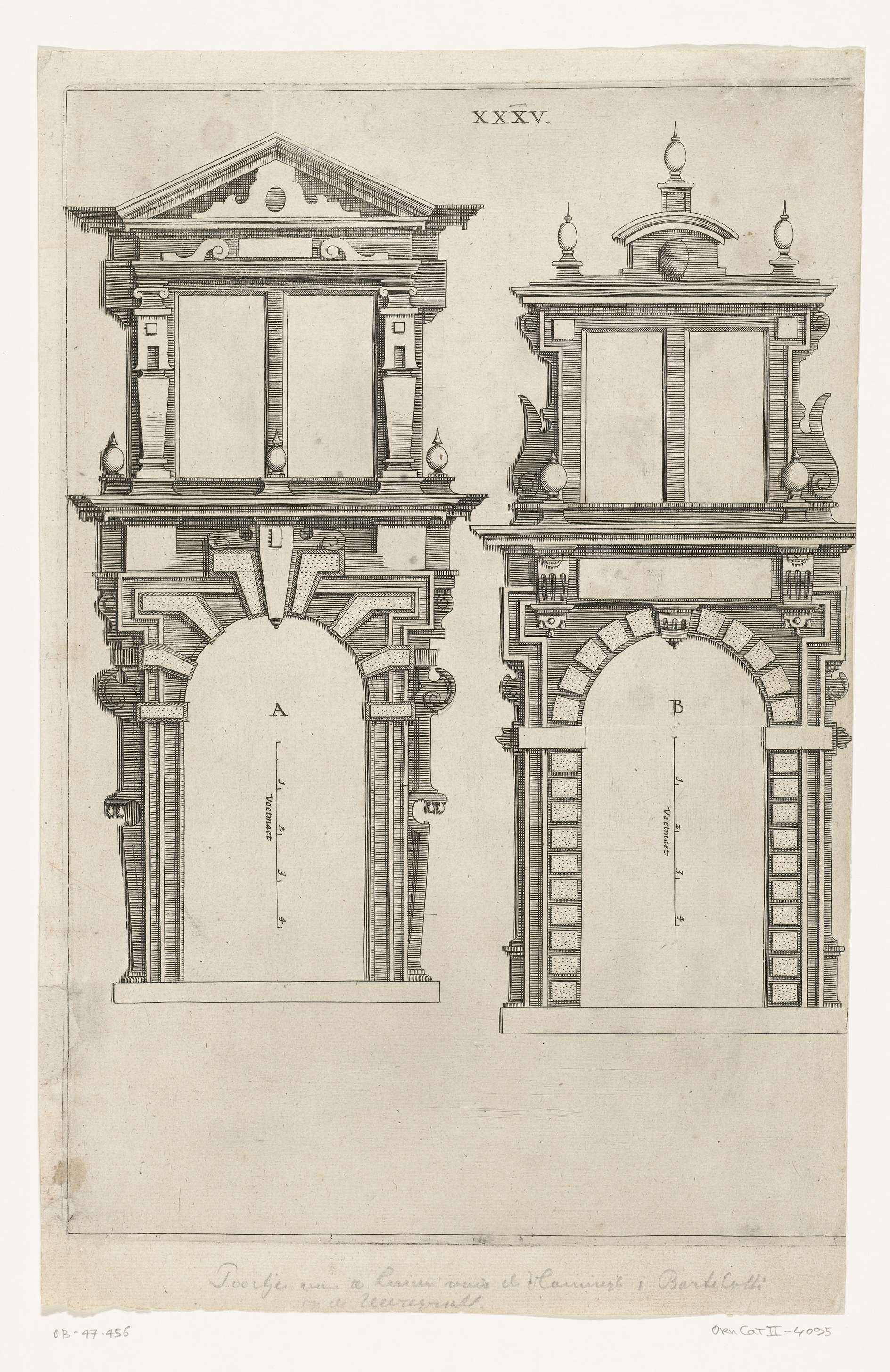 Blad XXXV. Poort A is van het huis van burgemeester De Vlamingh, poort B van het huis van Hans Bartolotti.