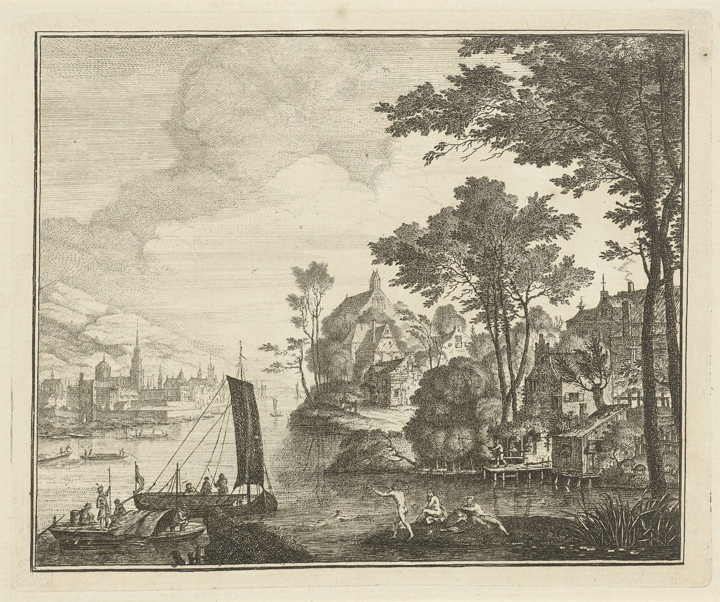 Rivierlandschap met zwemmers