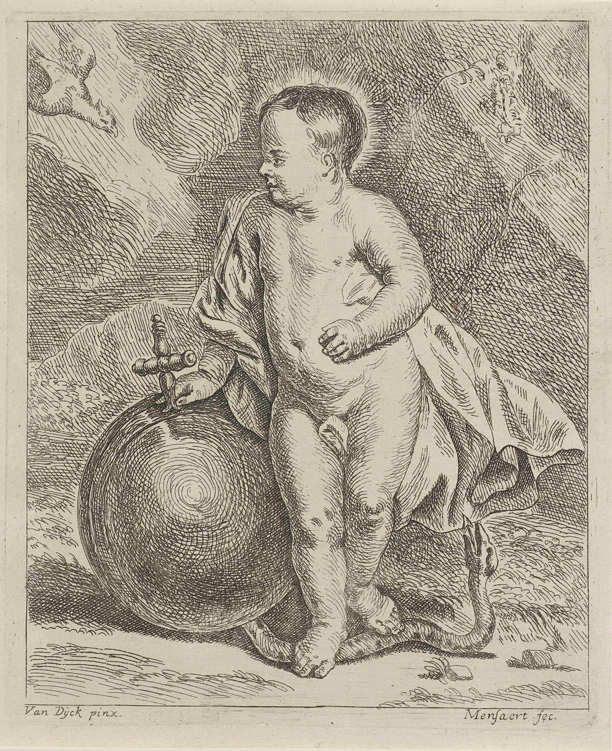 Christuskind met wereldbol en slang