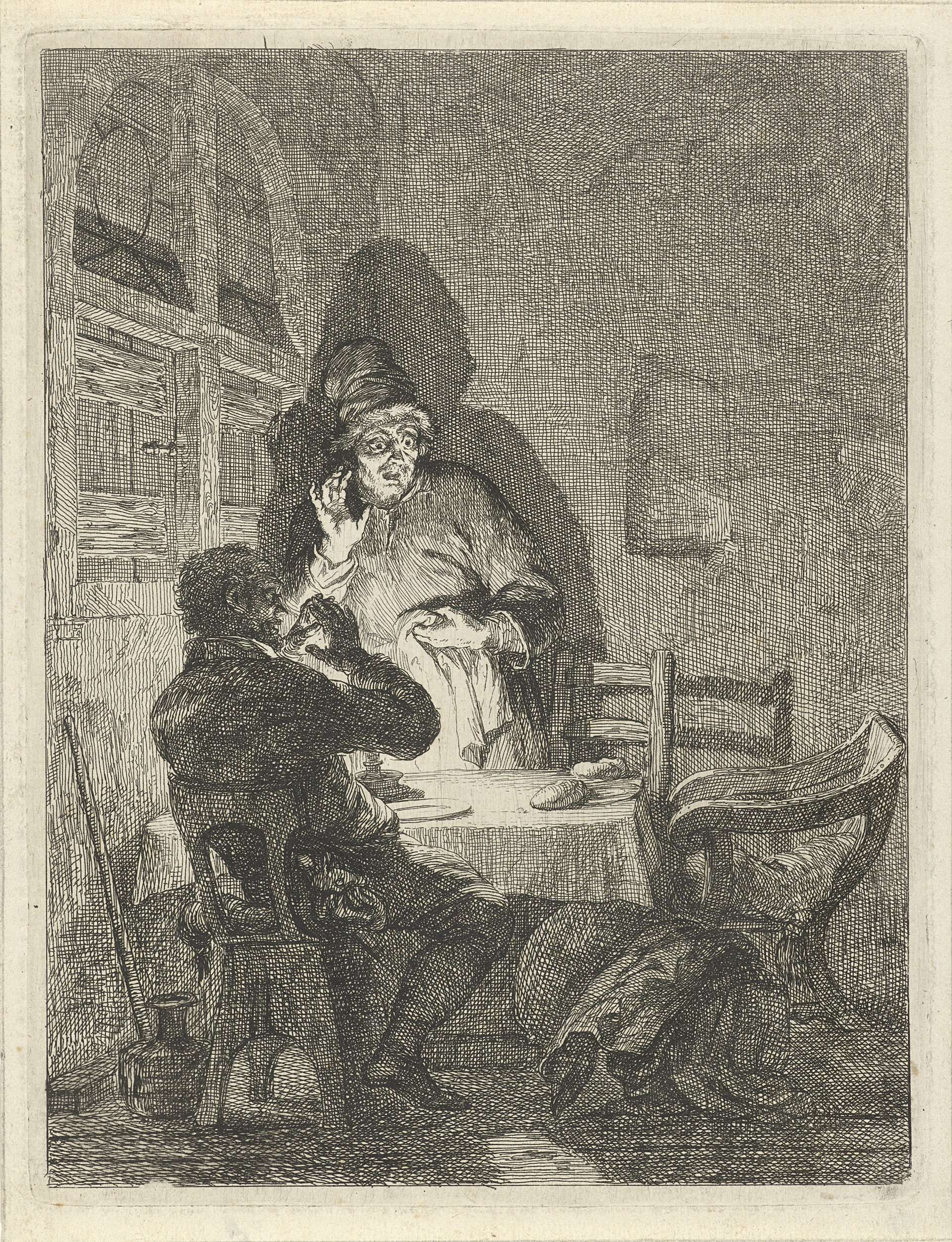De twee discipelen uit het verhaal van de Emmaüsgangers in een interieur, beschenen door kaarslicht, aan een tafel waarop een een stuk brood. Zij kijken verschrikt naar een derde lege stoel, waaruit zojuist Christus plotsklaps is verdwenen nadat Hij voor hen het brood had gebroken. Na deze handeling hadden de discipelen de hen tot dan ...