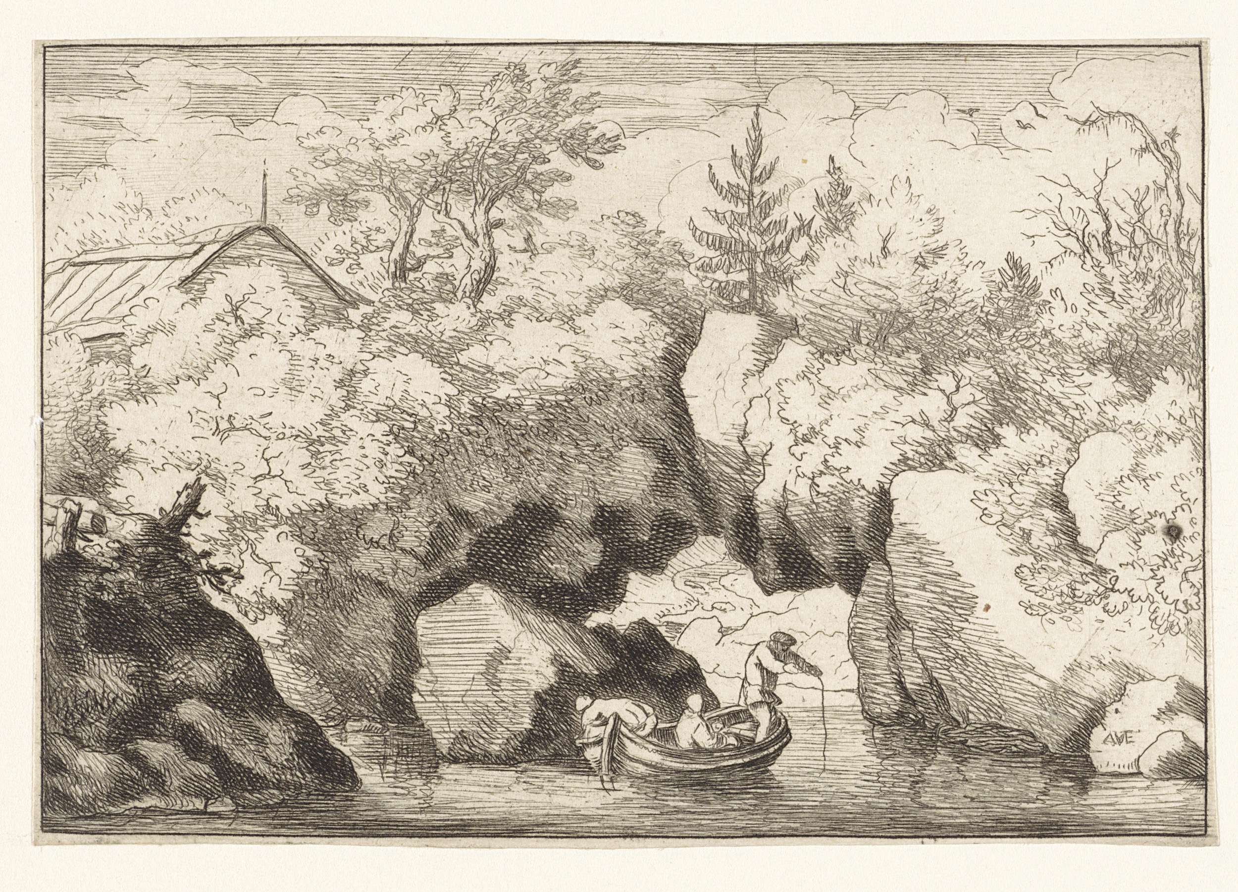Roeiboot bij de doorgang in de rots