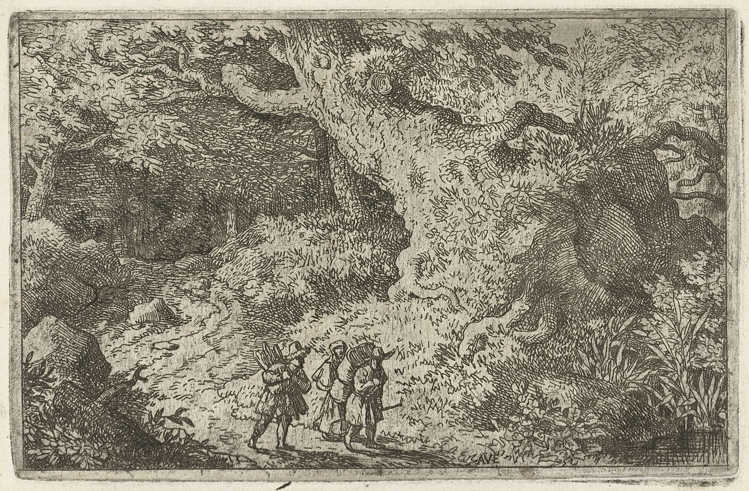 Drie reizigers in een bos