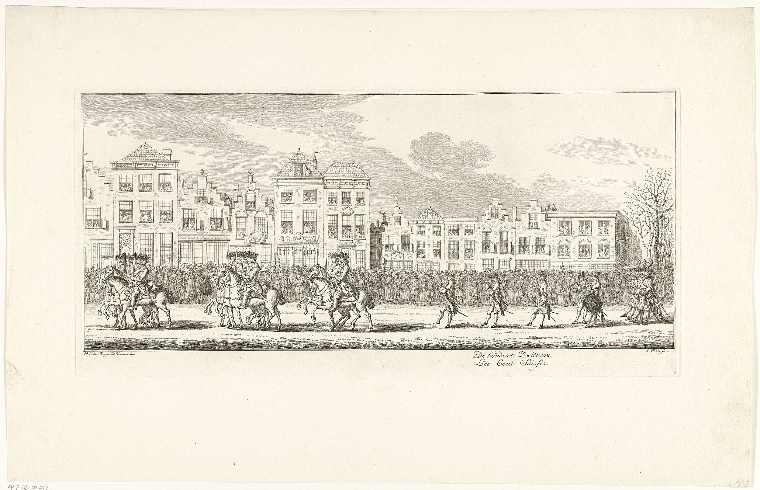 Soldaten te paard en de Zwitserse Garde in de lijkstoet van Anna van Hannover te Delft, 1759