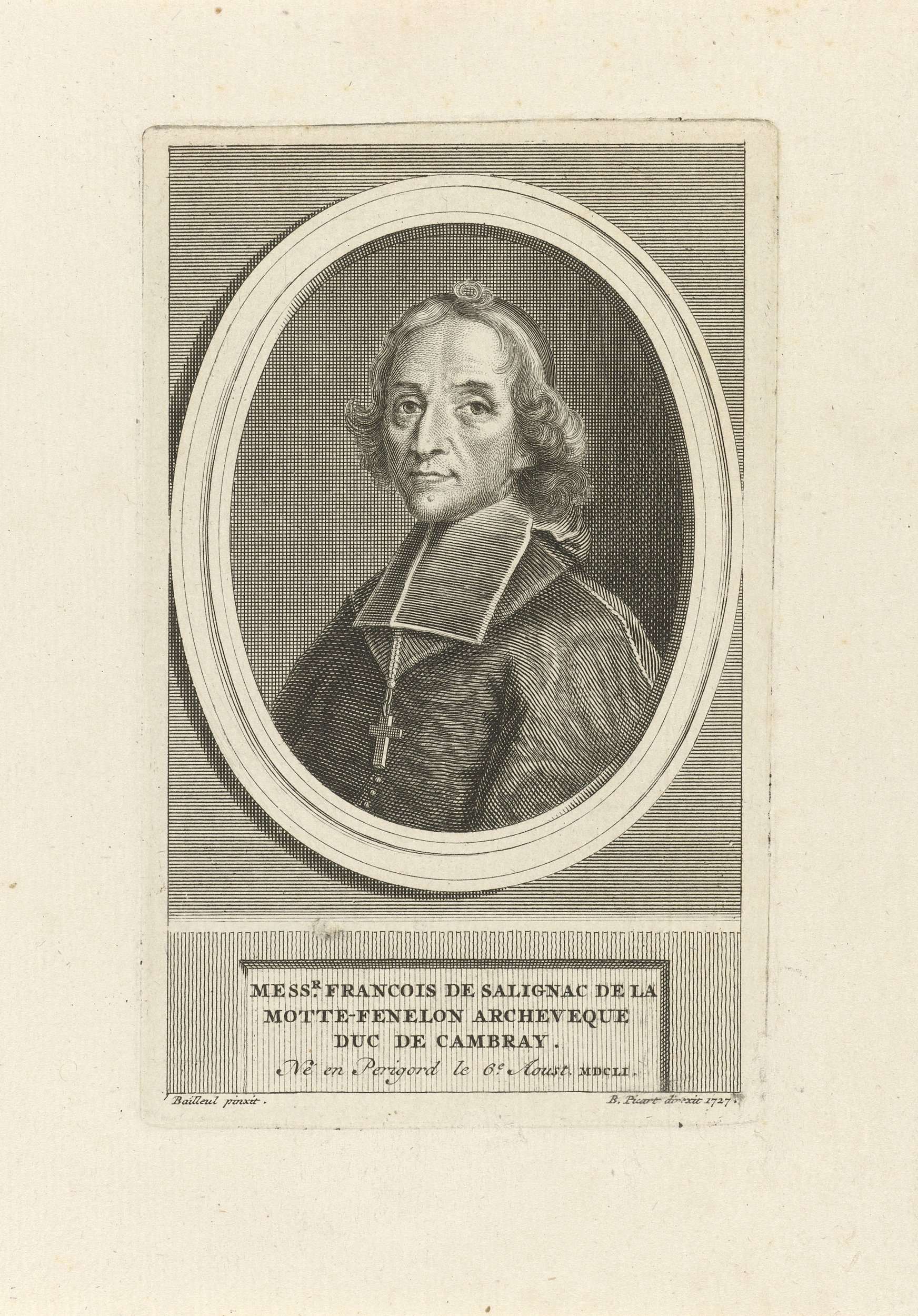 Portret van François de Salignac de la Mothe-Fénelon, aartsbisschop, theoloog en dichter.