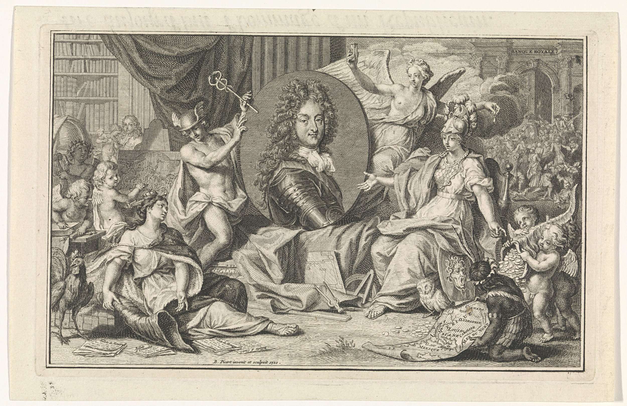 Allegorie op de Franse economie met het portret van Filips II, hertog van Orléans