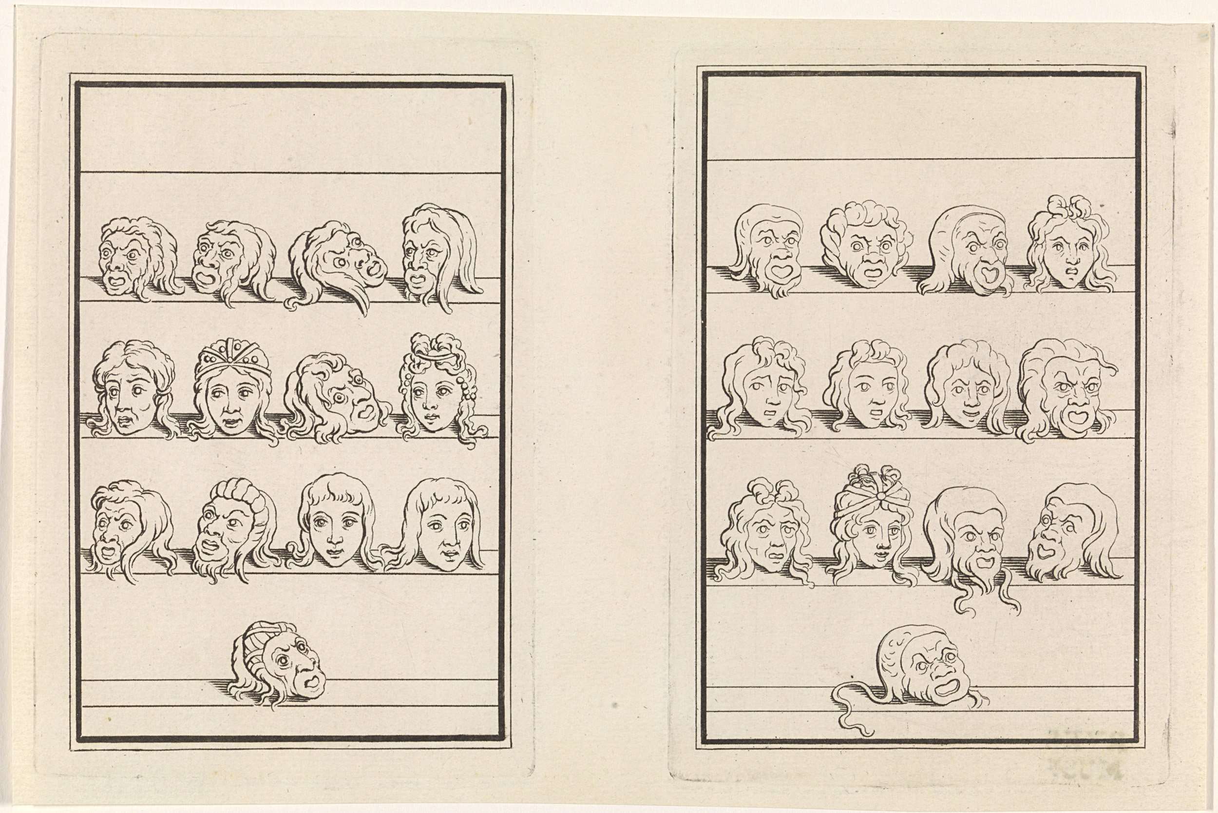 Maskers van personages uit de komedies Adelphoe en Andria van Terentius