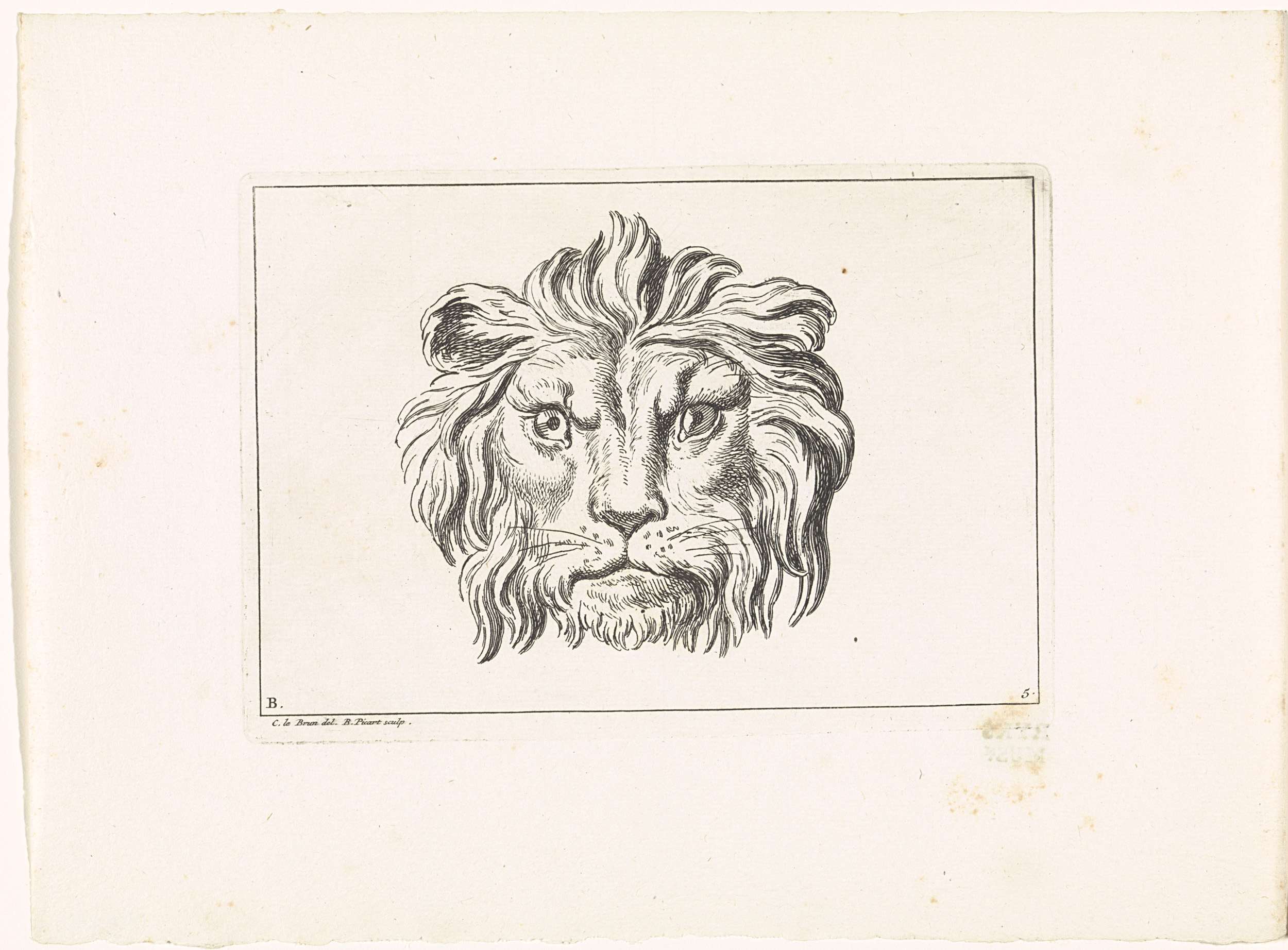 Blad met leeuwenkop. Gemerkt linksonder: B. Genummerd rechtsonder: 5.
