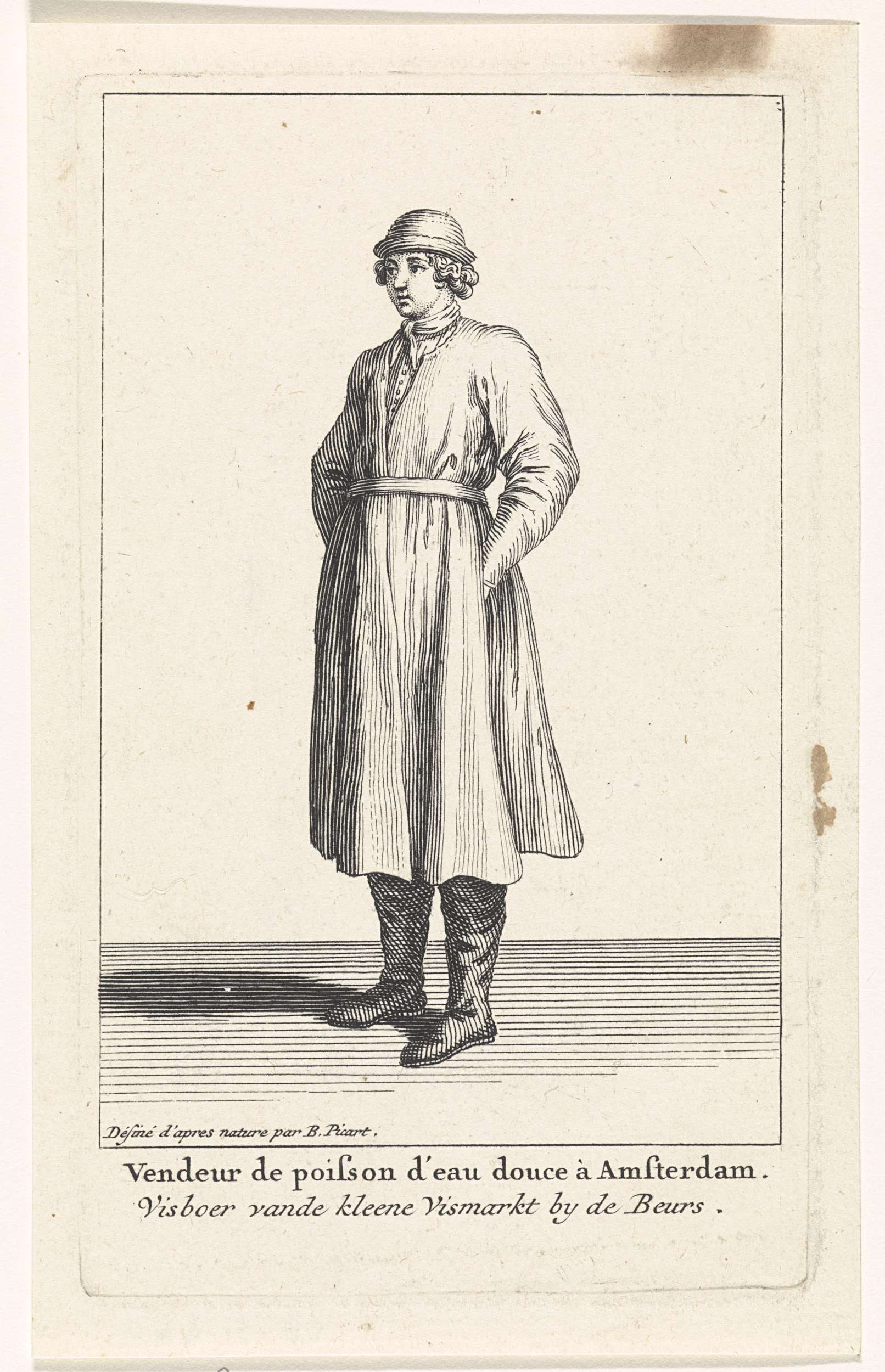 Figuur in klederdracht. De prent heeft een titel in het Frans en in het Nederlands.