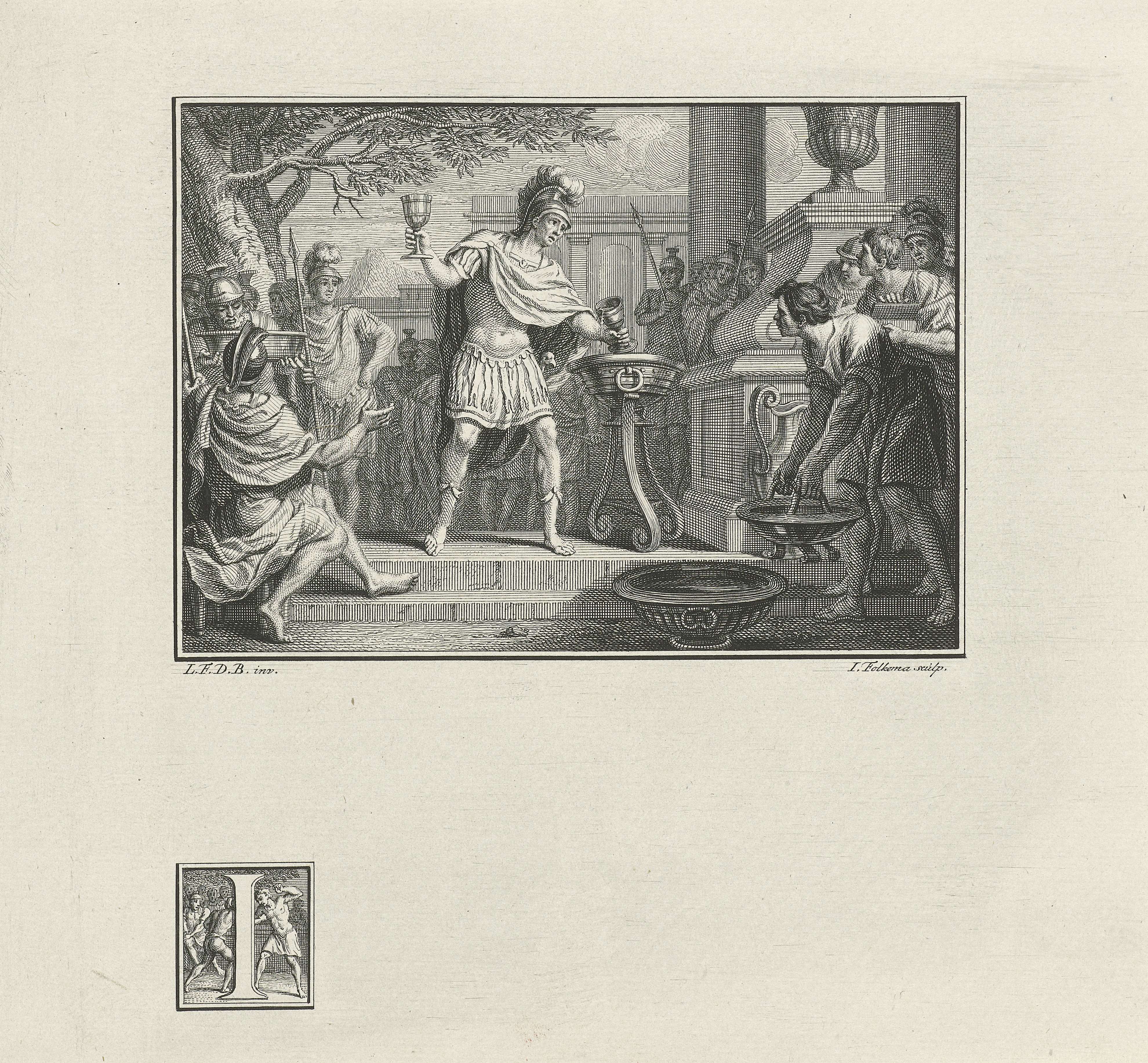 Negen dagen voordat het sporttoernooi, opgedragen aan Aeneas' overleden vader Anchises, werden gehouden trok Aeneas met een groep mannen naar een plek waar hij volgens het gebruik twee bekers onversneden wijn, twee bekers verse melk en twee bekers gewijd bloed over de grond uitgoot en purperen bloemen strooide onder het uitspreken van een gebed. Aeneas ...