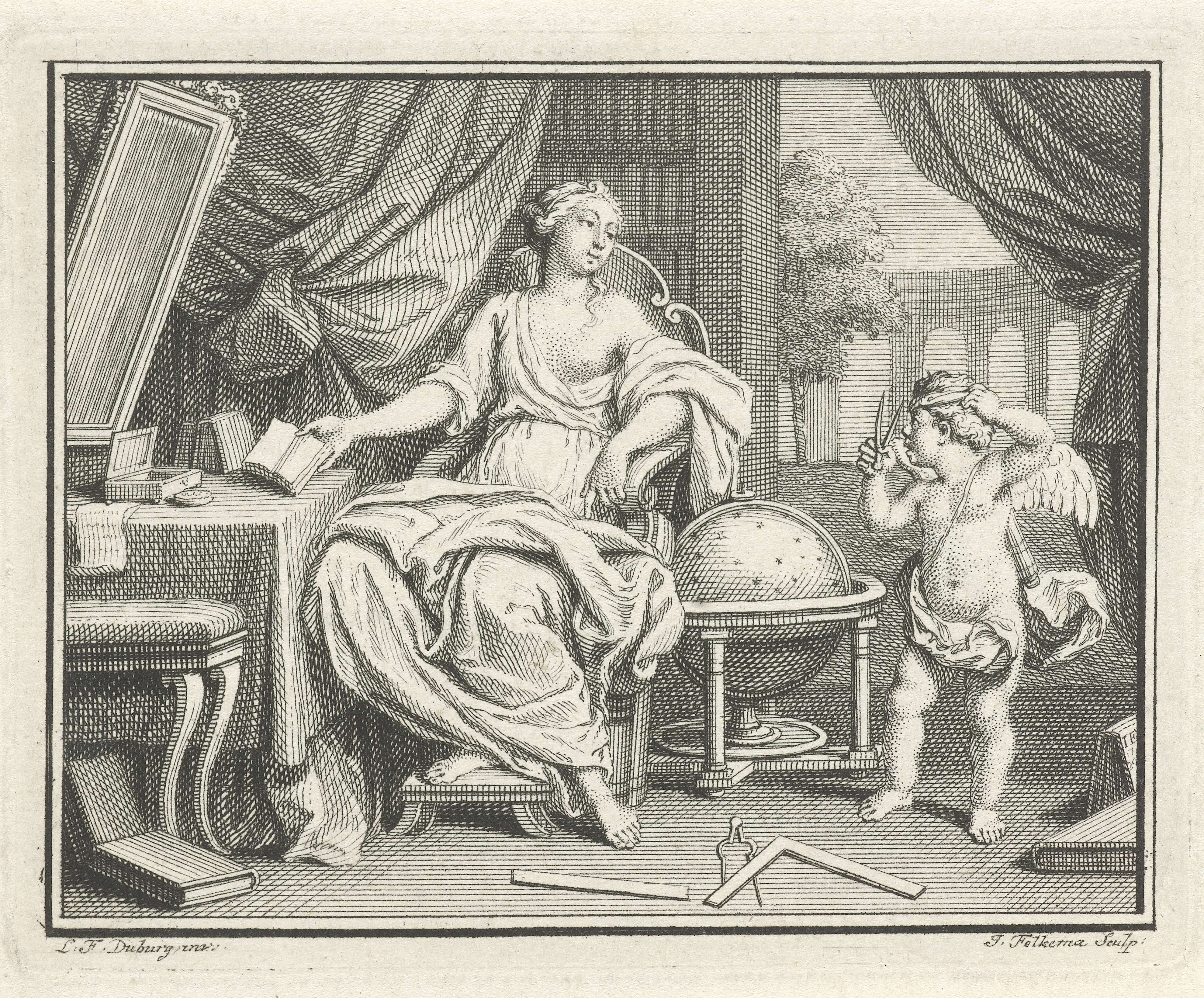 De personificatie van Astronomie, een van de Zeven Vrije Kunsten, zit in een vertrek achter een tafel waar boeken op liggen. Naast haar staat een globe, op de grond liggen meetinstrumenten en boeken. Astronomie wordt vergezeld door een putto die met een passer speelt.